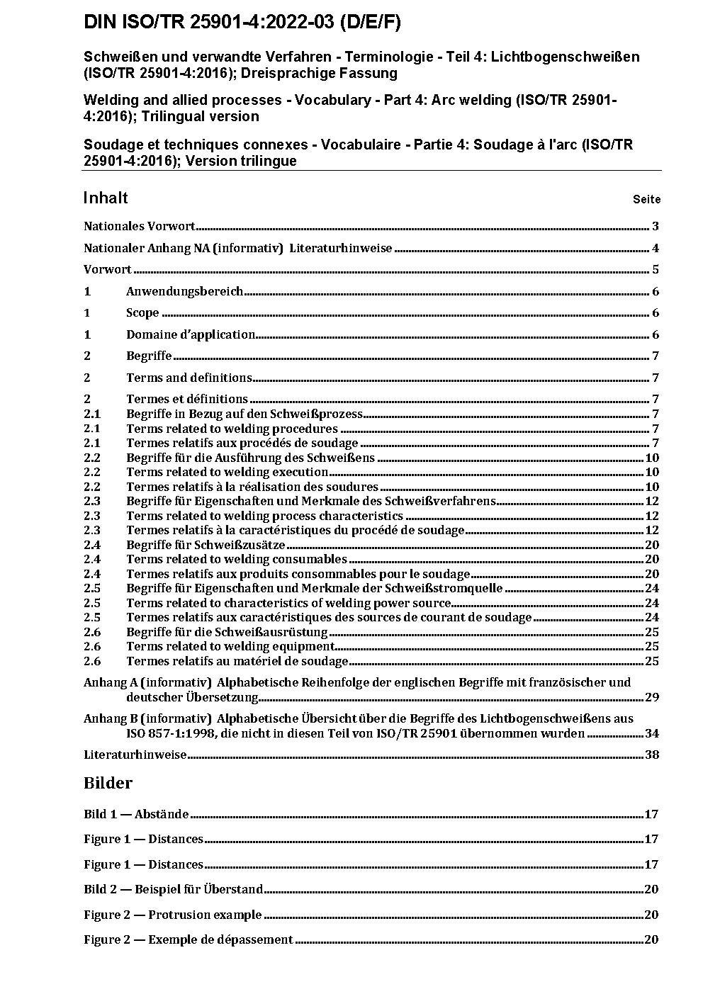 Schweißen und verwandte Verfahren - Terminologie - Teil 4: Lichtbogenschweißen (ISO/TR 25901-4:2016); Dreisprachige Fassung
