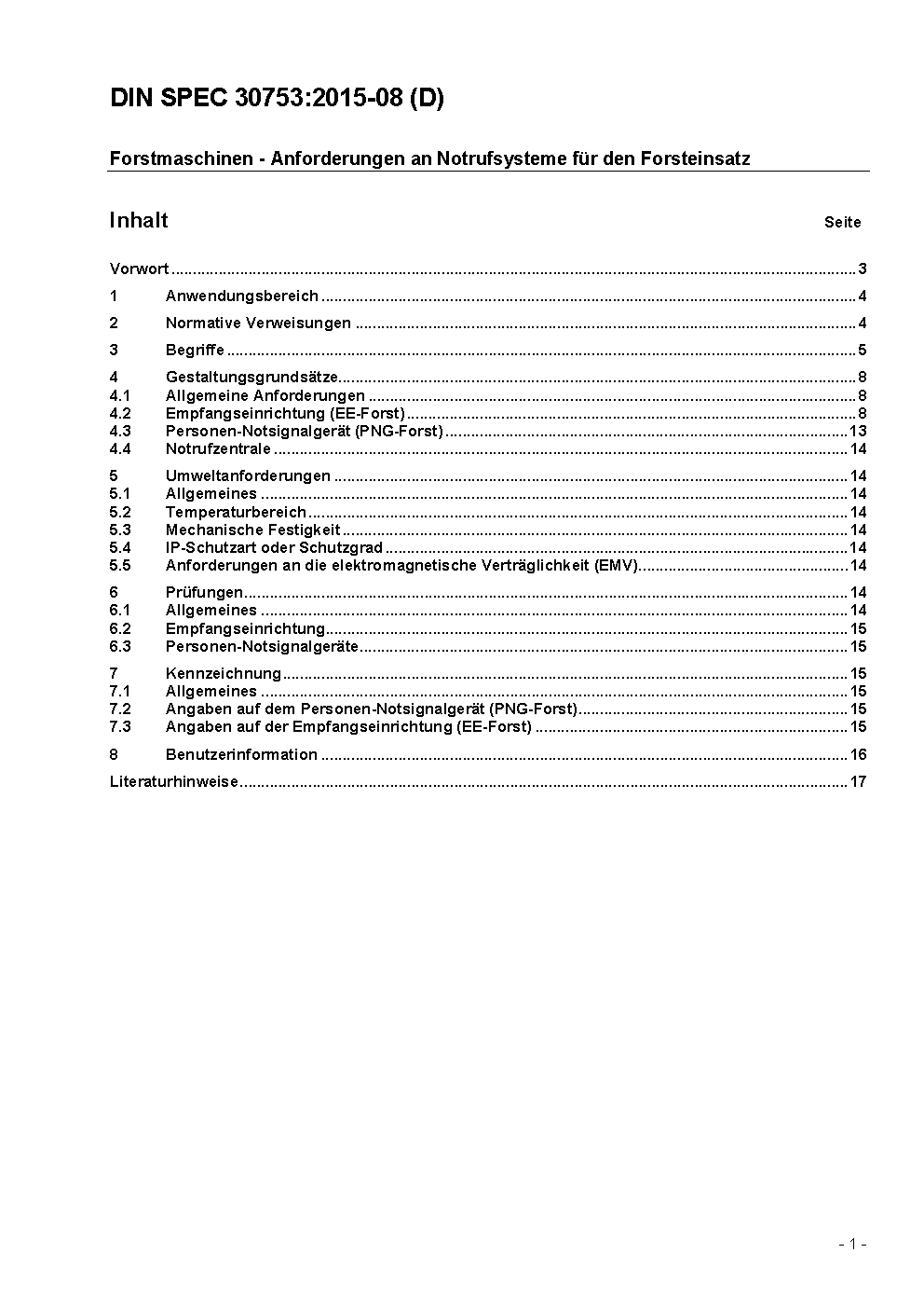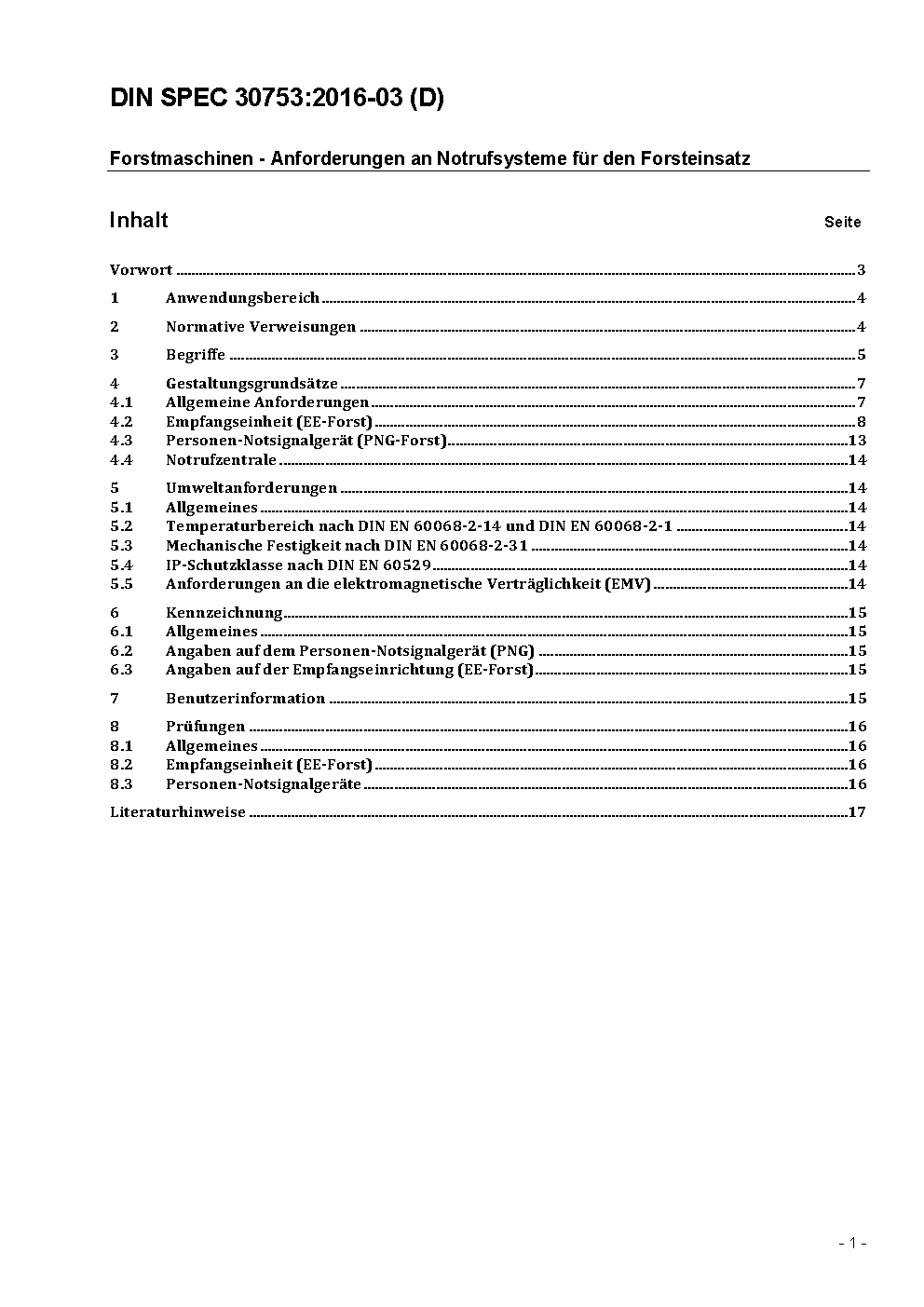 This technical specification descibes fundamental technical requirements for emergency call systems for forestry use. The followong requirements are specified: - requirements for design and layout; - environmental requirements; - markings; - user's information - valdation and testing This specification does not cover the specific safety rules for using the emergency call systems. This is content of the guidelines and rules of your local accident insurer.
