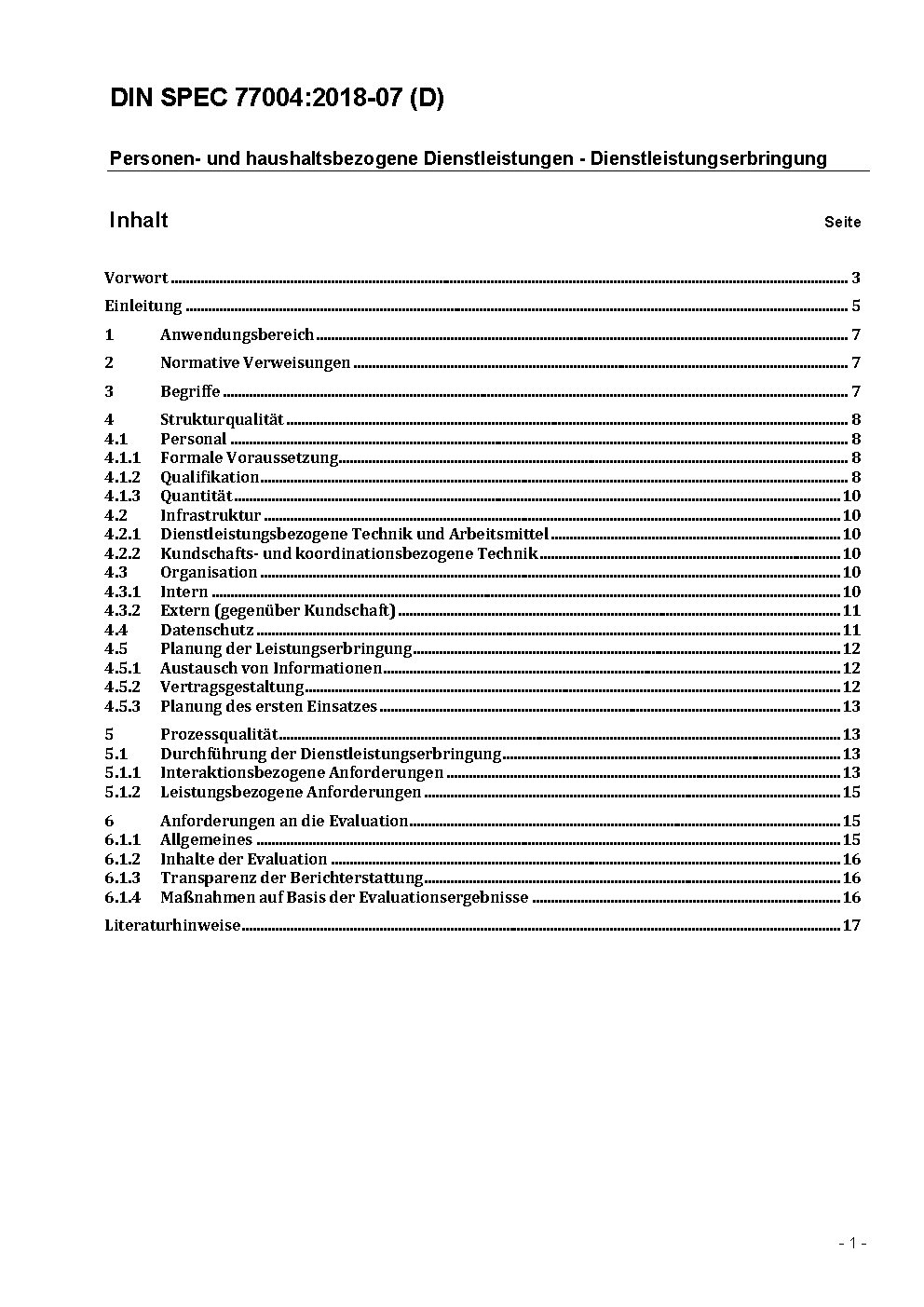 This DIN SPEC in accordance with the PAS procedure was developed within a workshop set up on a temporary basis. The document waas developed and approved by authors named in the business plan. This DIN SPEC will specify the processes and procedures for providing personal and household services. These requirements include those applying to all of the processes, general and specific requirements for providing the services, as well as ethical requirements which the service provider must meet to ensure high quality services. These transparent, generally applicable and standardized procedures - along with the standardized terminology - will make it easier for customers and other service recipients to compare providers and select the right one.