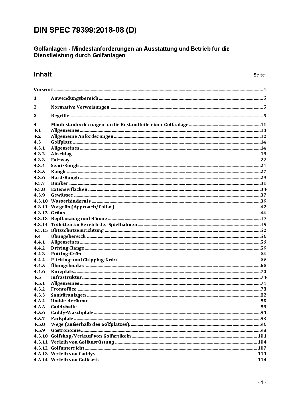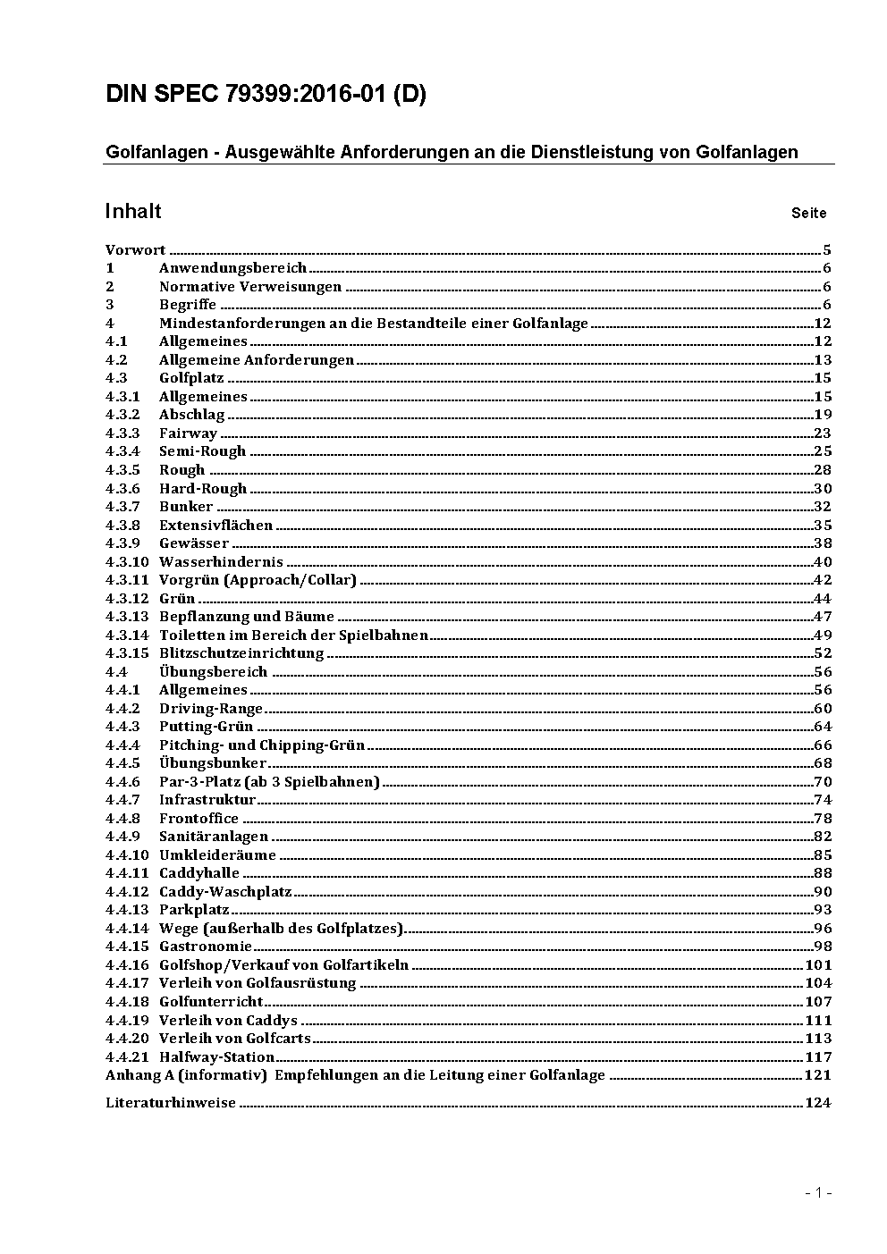 In this specification, in a first step golf courses are defined in three different golf facility types ('basic', 'standard', 'comfort'), solely defined by the number of components of a golf course (eg, driving range, club house, golf academy etc.). If a golf course does not meet this specification, none of the three defined types are associated with golf course. In a second step, the quality requirements (silver, gold, platinum) to the components of a golf course will be setted.