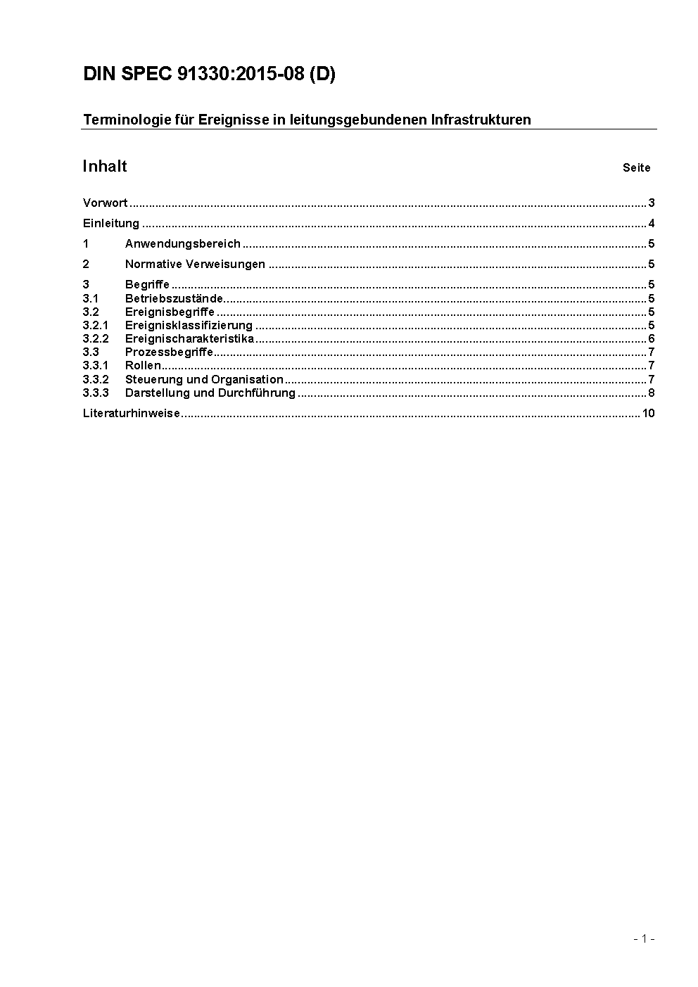 This DIN SPEC in accordance with the PAS procedure was developed within a workshop set up on a temporary basis. The DIN SPEC was developed and approved by the authors named in the foreword. This DIN SPEC defines concepts to describe, prepare for and deal with events occurring in gas, water, waste water and district heating networks. The definitions are intended first and foremost to provide the basis for communication between system operators in the same utility sector and in different sectors.