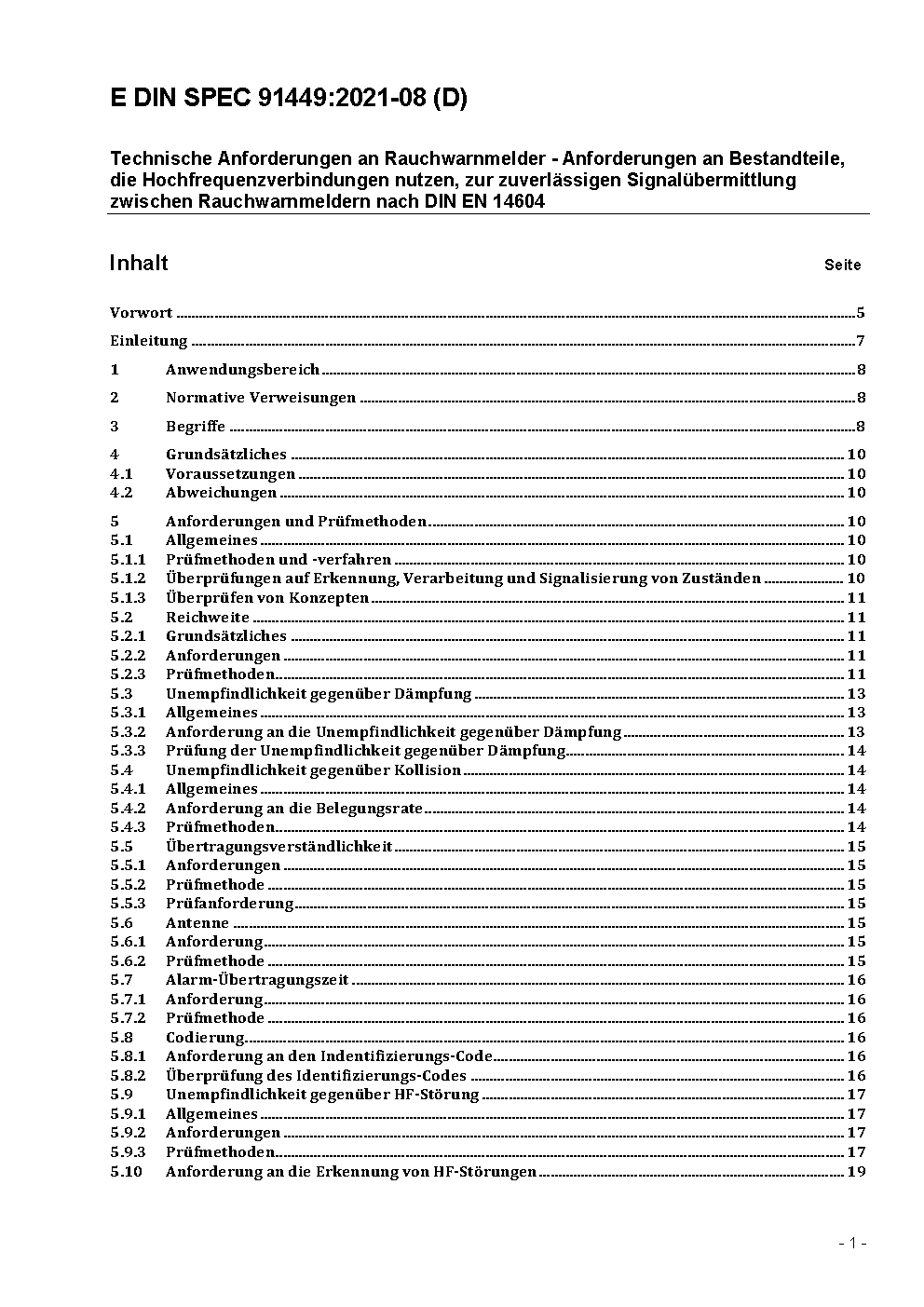 Technische Anforderungen an Rauchwarnmelder - Anforderungen an Bestandteile, die Hochfrequenzverbindungen nutzen, zur zuverlässigen Signalübermittlung zwischen Rauchwarnmeldern nach DIN EN 14604