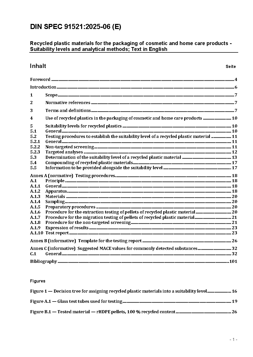 Recycelte Kunststoffe für die Verpackung von Kosmetik- und Haushaltspflegeprodukten - Eignungsgrade und analytische Methoden; Text Englisch