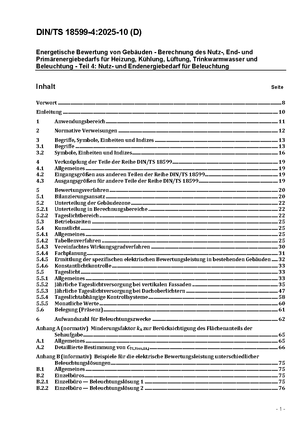 Energetische Bewertung von Gebäuden - Berechnung des Nutz-, End- und Primärenergiebedarfs für Heizung, Kühlung, Lüftung, Trinkwarmwasser und Beleuchtung - Teil 4: Nutz- und Endenergiebedarf für Beleuchtung