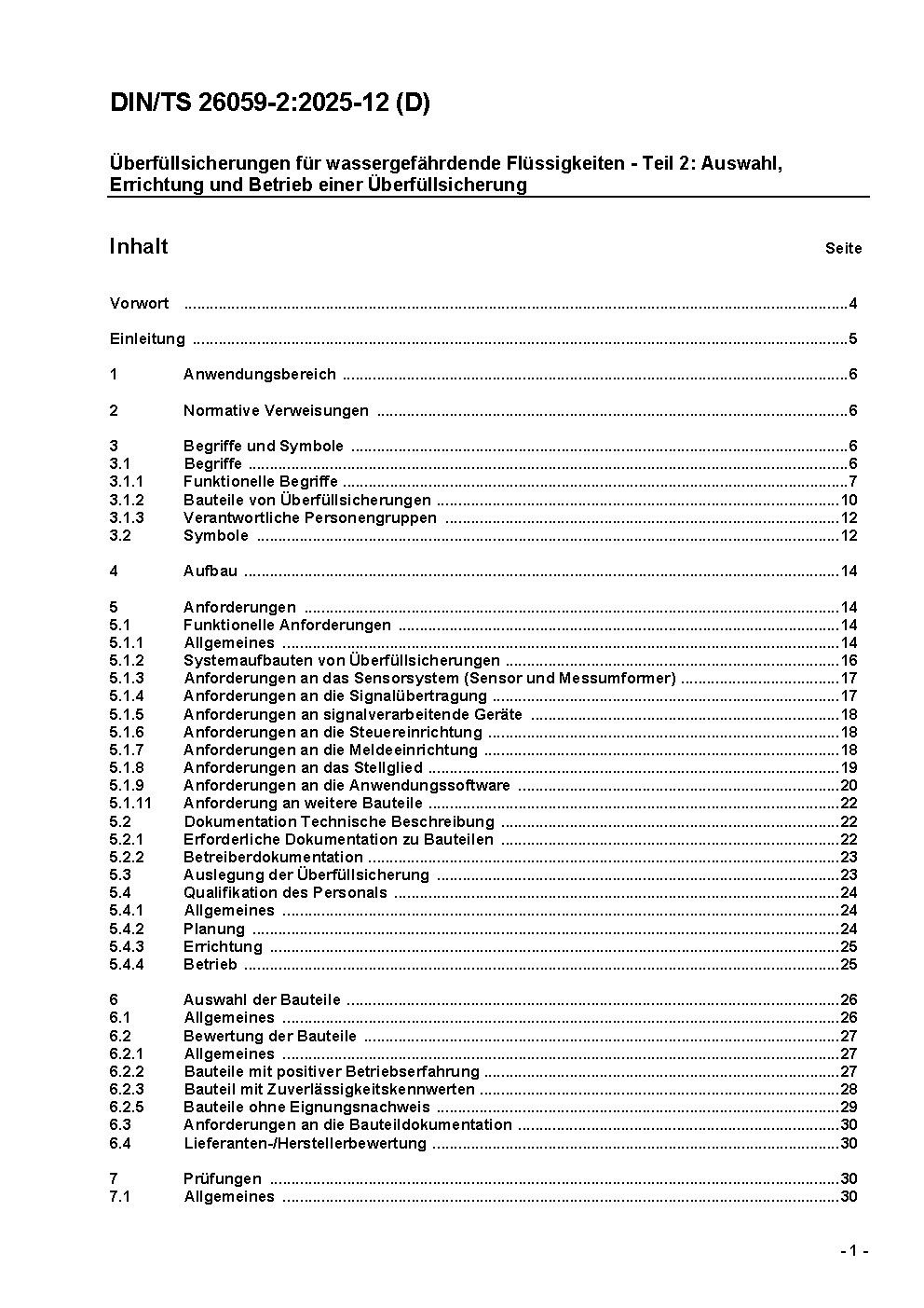 Überfüllsicherungen für wassergefährdende Flüssigkeiten - Teil 2: Auswahl, Errichtung und Betrieb einer Überfüllsicherung