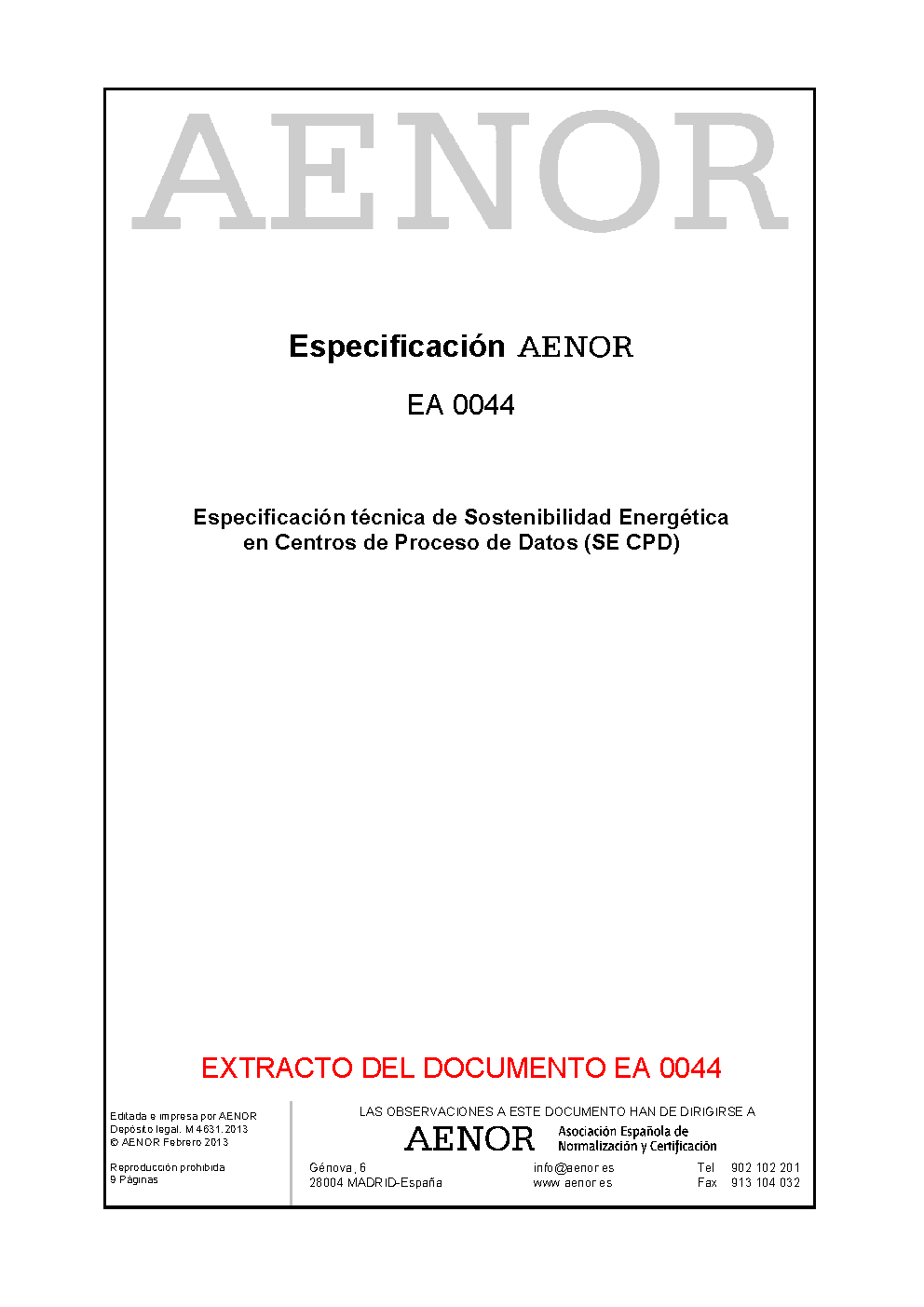 | Publisher | Asociacion Espanola de Normalizacion y Certificacion (AENOR) |