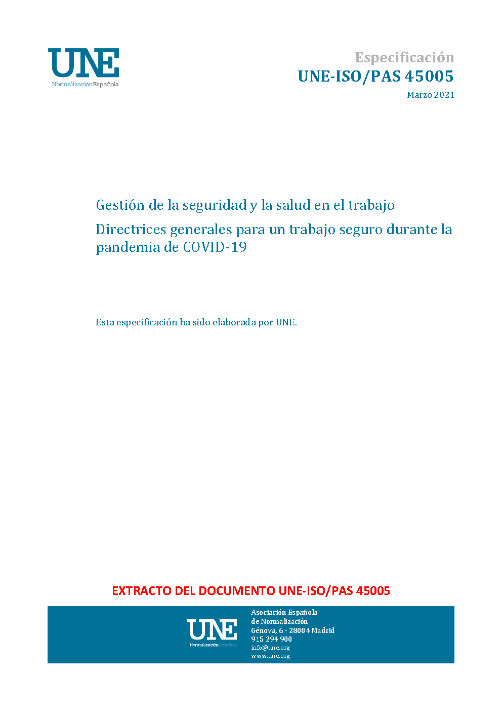 ESPECIFICACION UNE-ISO/PAS 45005:2021