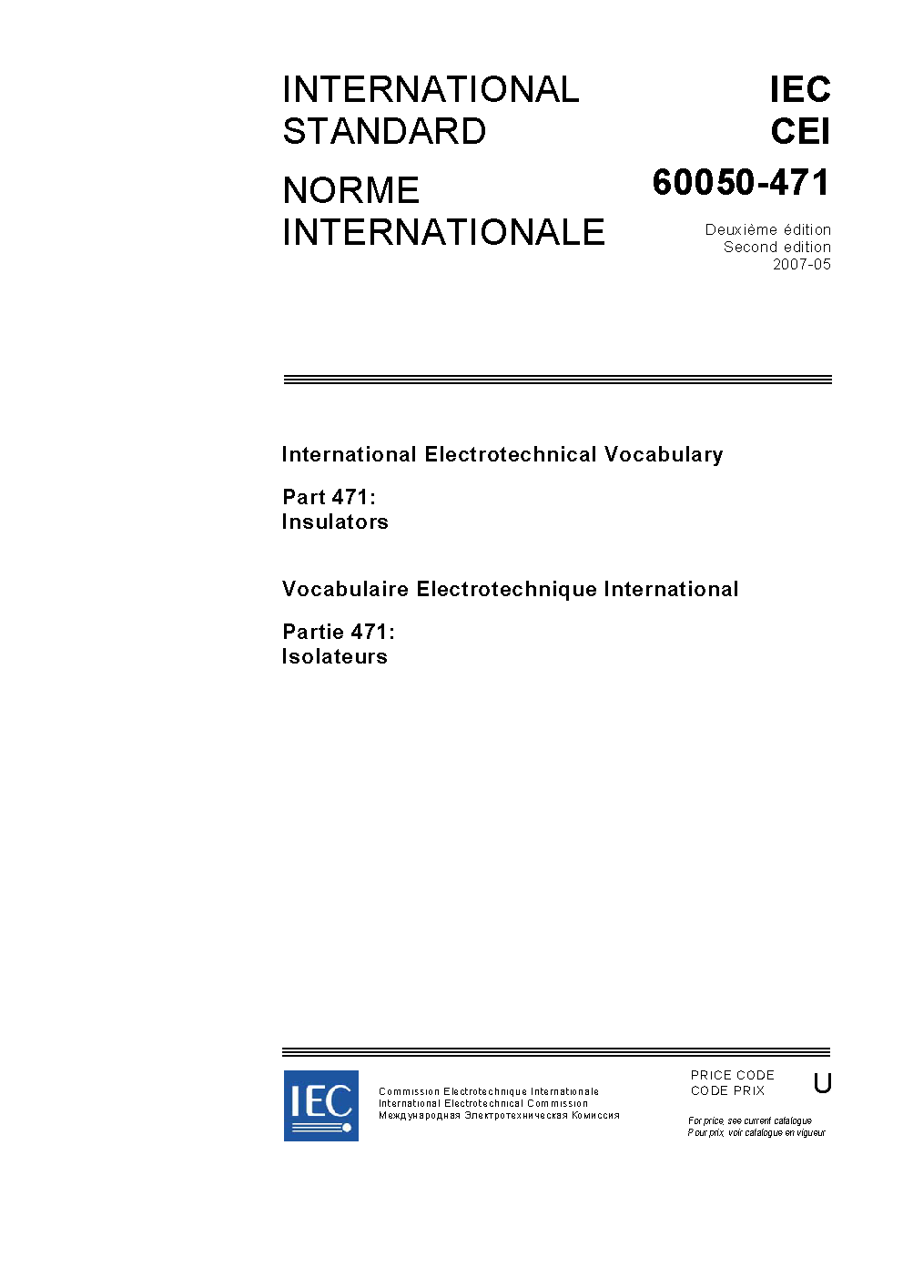 IEC 60050-471:2007 International Electrotechnical Vocabulary (IEV) - Part 471: Insulators