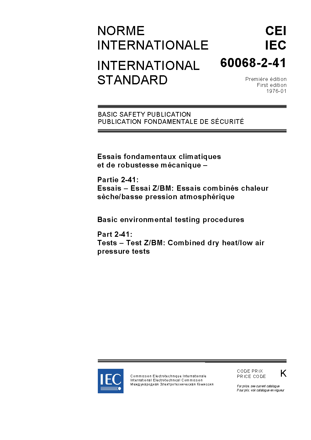 IEC 60068-2-41:1976 Basic environmental testing procedures - Part 2-41: Tests - Test Z/BM: Combined dry heat/low air pressure tests