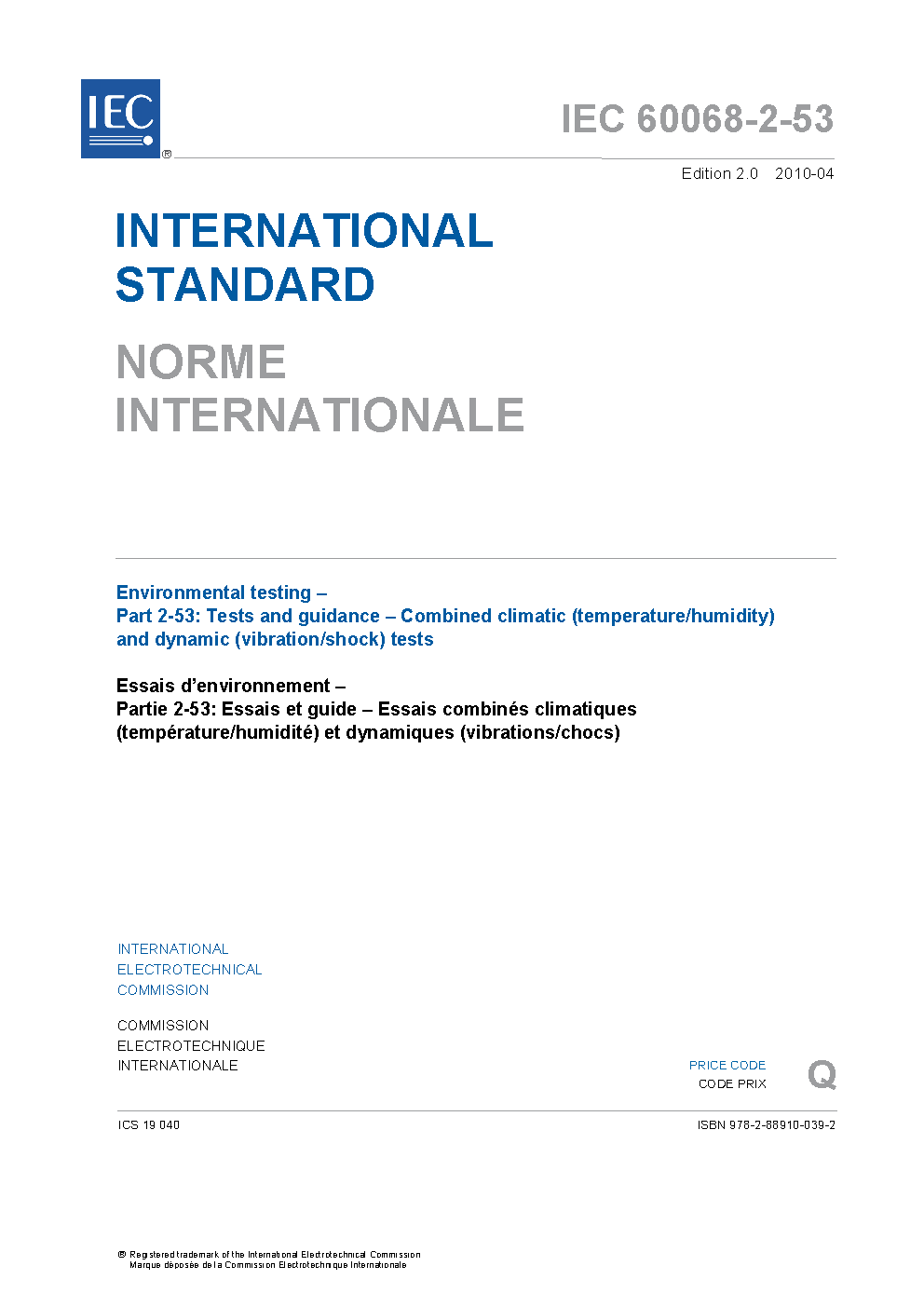 IEC 60068-2-53:2010 Environmental testing - Part 2-53: Tests and guidance - Combined climatic (temperature/humidity) and dynamic (vibration/shock) tests
