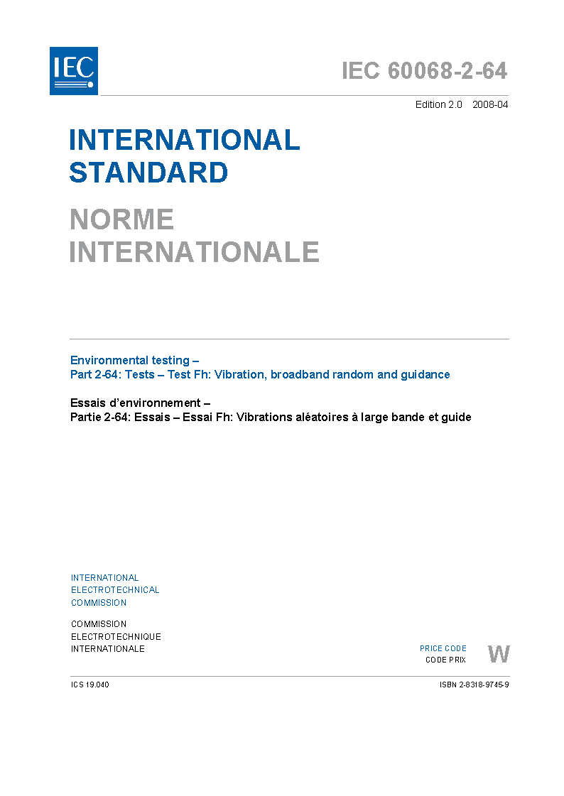 IEC 60068-2-64:2008 Environmental testing - Part 2-64: Tests - Test Fh: Vibration, broadband random and guidance