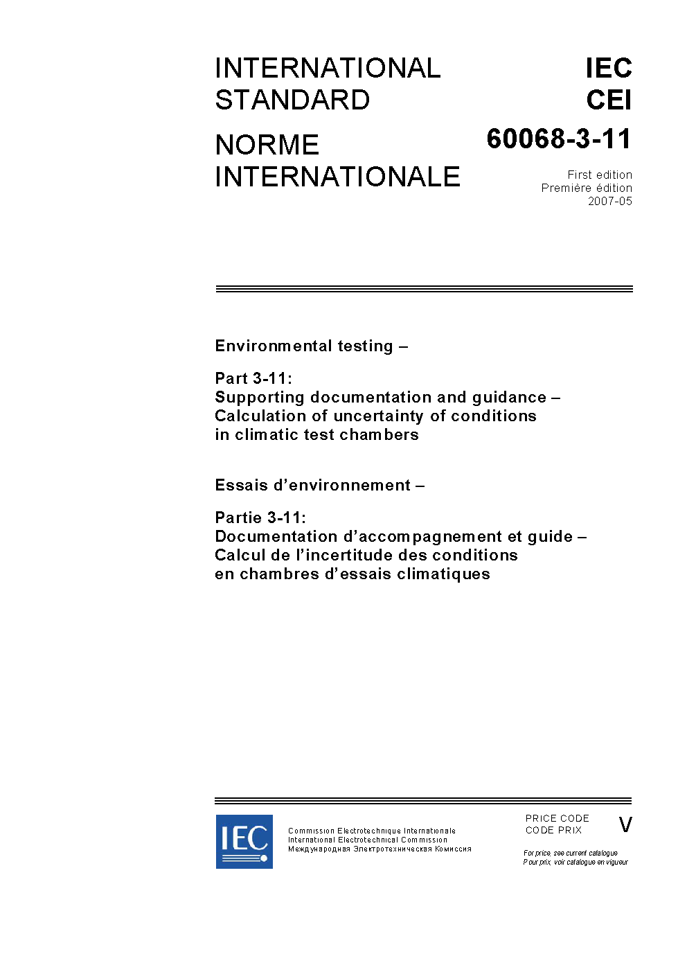 IEC 60068-3-11:2007 Environmental testing - Part 3-11: Supporting documentation and guidance - Calculation of uncertainty of conditions in climatic test chambers