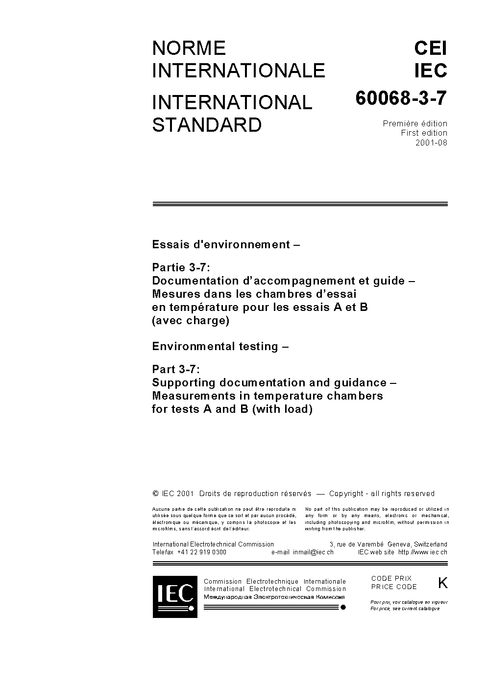 IEC 60068-3-7:2001 Environmental testing - Part 3-7: Supporting documentation and guidance - Measurements in temperature chambers for tests A and B (with load)