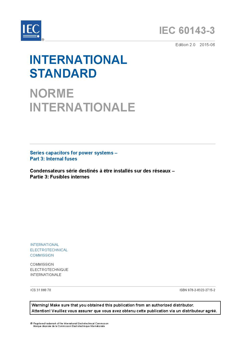 IEC 60143-3:2015 Series capacitors for power systems - Part 3: Internal fuses