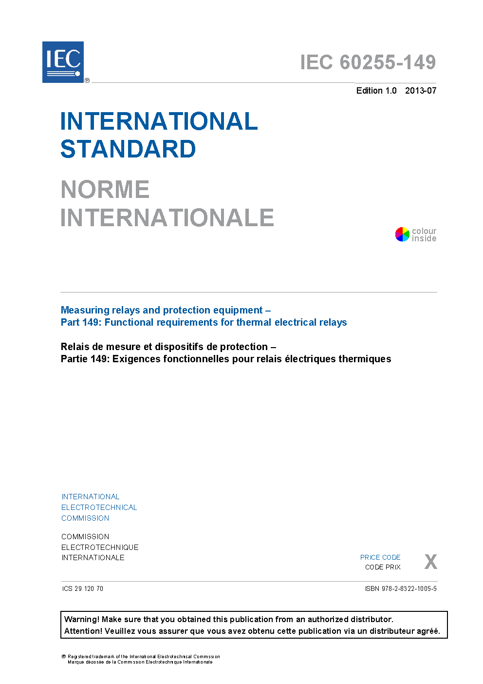 IEC 60255-149:2013 Measuring relays and protection equipment - Part 149: Functional requirements for thermal electrical relays