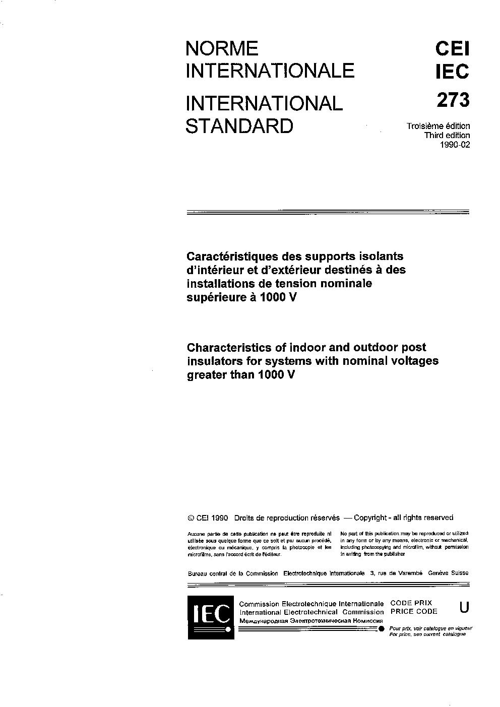 IEC 60273:1990 Characteristic of indoor and outdoor post insulators for systems with nominal voltages greater than 1000 V