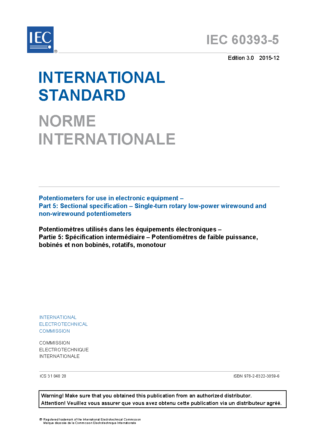 IEC 60393-5:2015 Potentiometers for use in electronic equipment - Part 5: Sectional specification - Single-turn rotary low-power wirewound and non-wirewound potentiometers