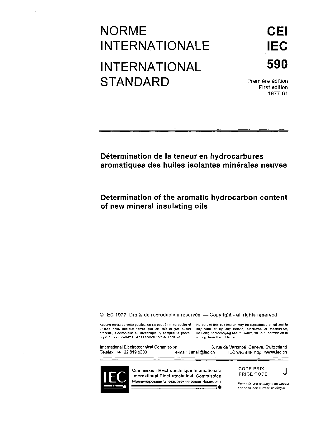 IEC 60590:1977 Determination of the aromatic hydrocarbon content of new mineral insulating oils