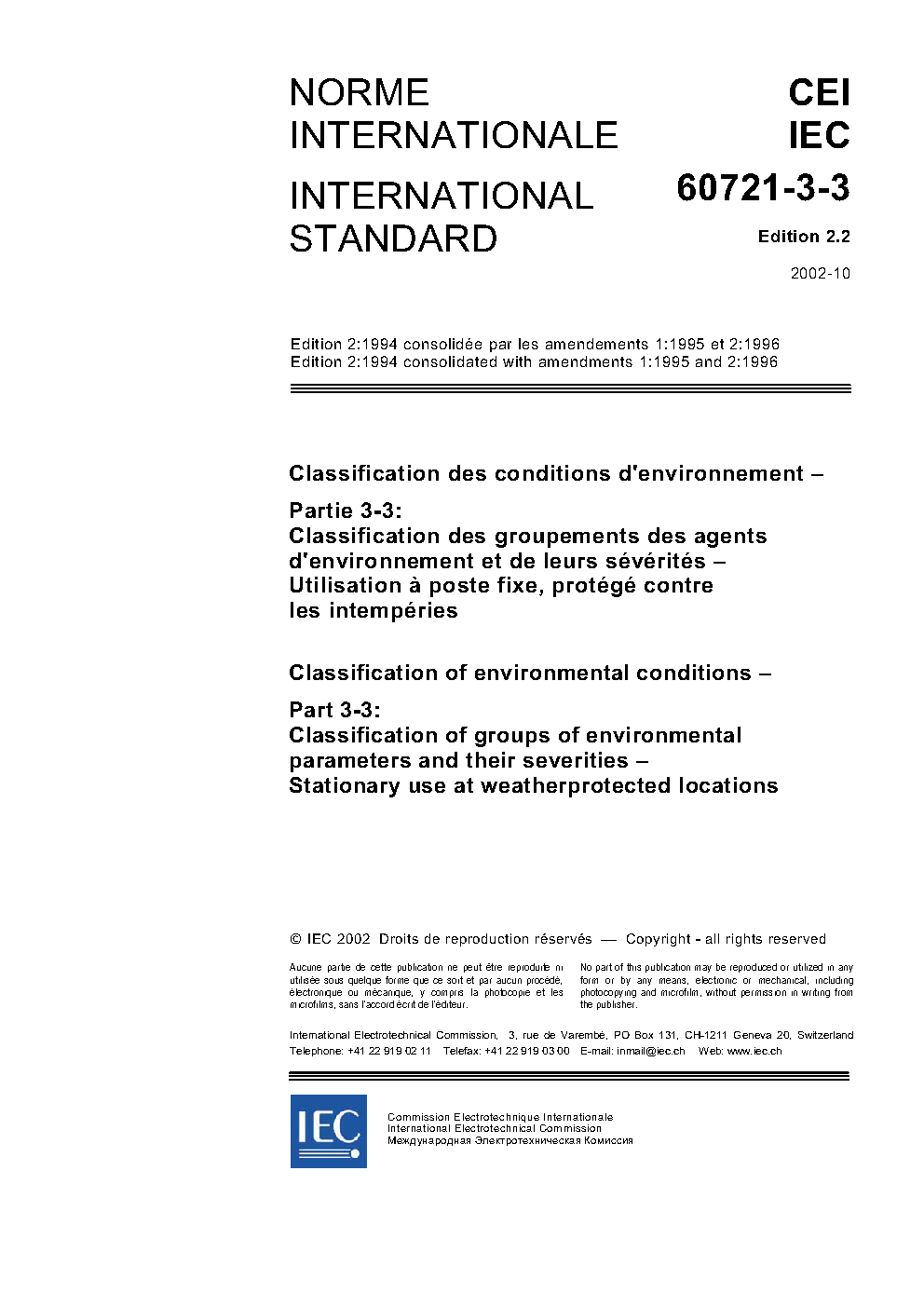 IEC 60721-3-3:1994+AMD1:1995+AMD2:1996 Edition 2.2