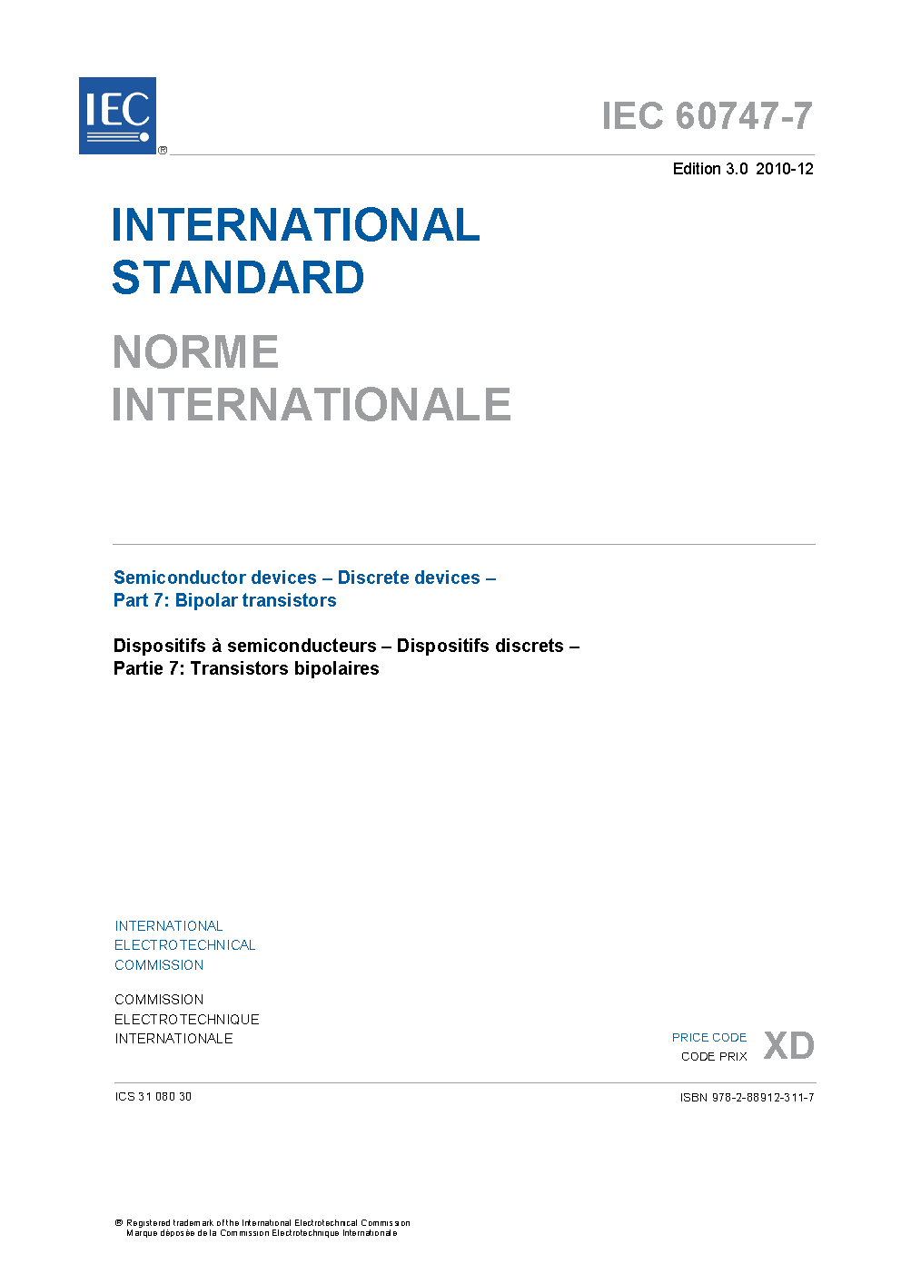 IEC 60747-7:2010 gives the requirements applicable to the following sub-categories of bipolar transistors excluding microwave transistors.