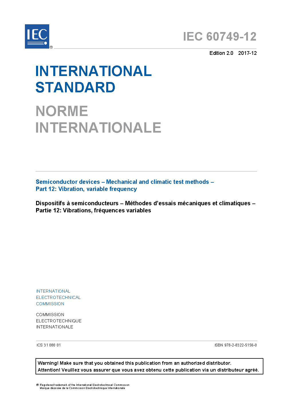 IEC 60749-12:2017 Semiconductor devices - Mechanical and climatic test methods - Part 12: Vibration, variable frequency