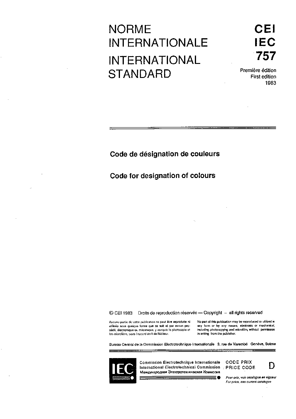 Applies to the text of descriptions, drawings, markings, etc., in the electrotechnical field and lays down a letter code for the designation of some distinct colour. Has the status of a basic safety publication in accordance with IEC Guide 104.