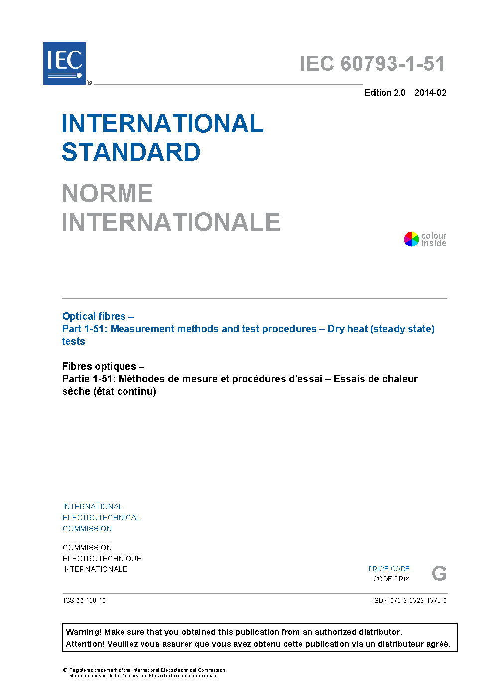 IEC 60793-1-51:2014 Optical fibres - Part 1-51: Measurement methods and test procedures - Dry heat (steady state) tests