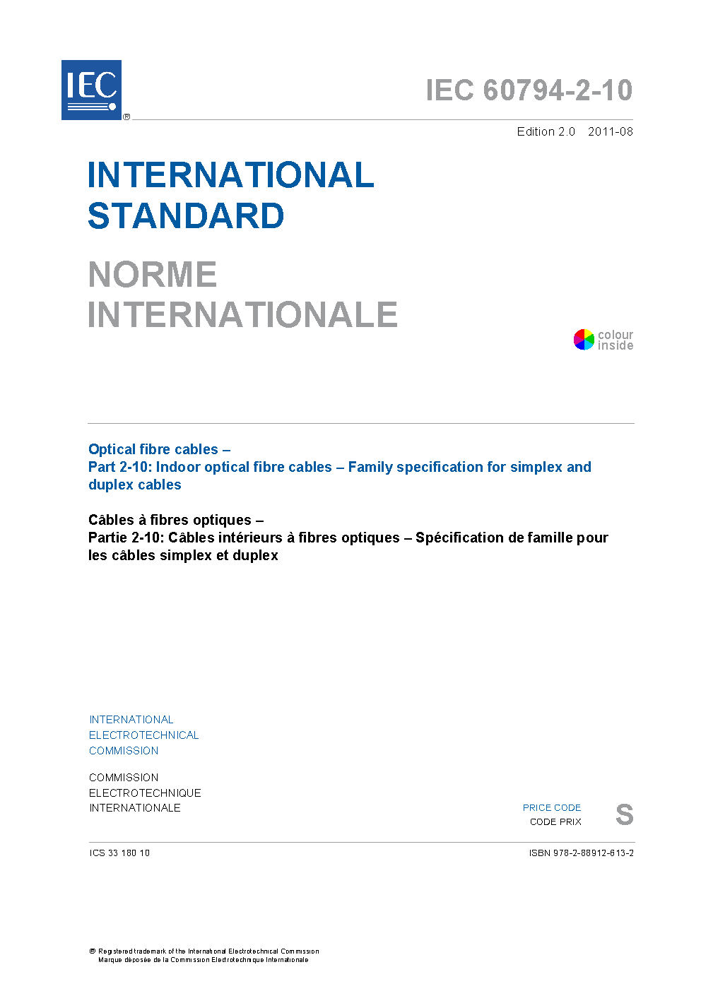 IEC 60794-2-10:2011 covers simplex and duplex optical fibre cables for indoor use except for cables used in terminated assemblies specified by IEC 60794-2-50. The requirements of the Sectional specification IEC 60794-2 are applicable to cables covered by this standard. The main changes with respect to the previous edition are as follows: