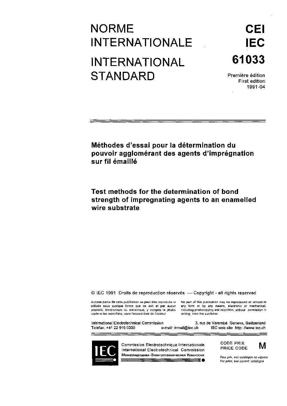 IEC 61033:1991/AMD1:2006 Amendment 1 - Test methods for the determination of bond strength of impregnating agents to an enamelled wire substrate