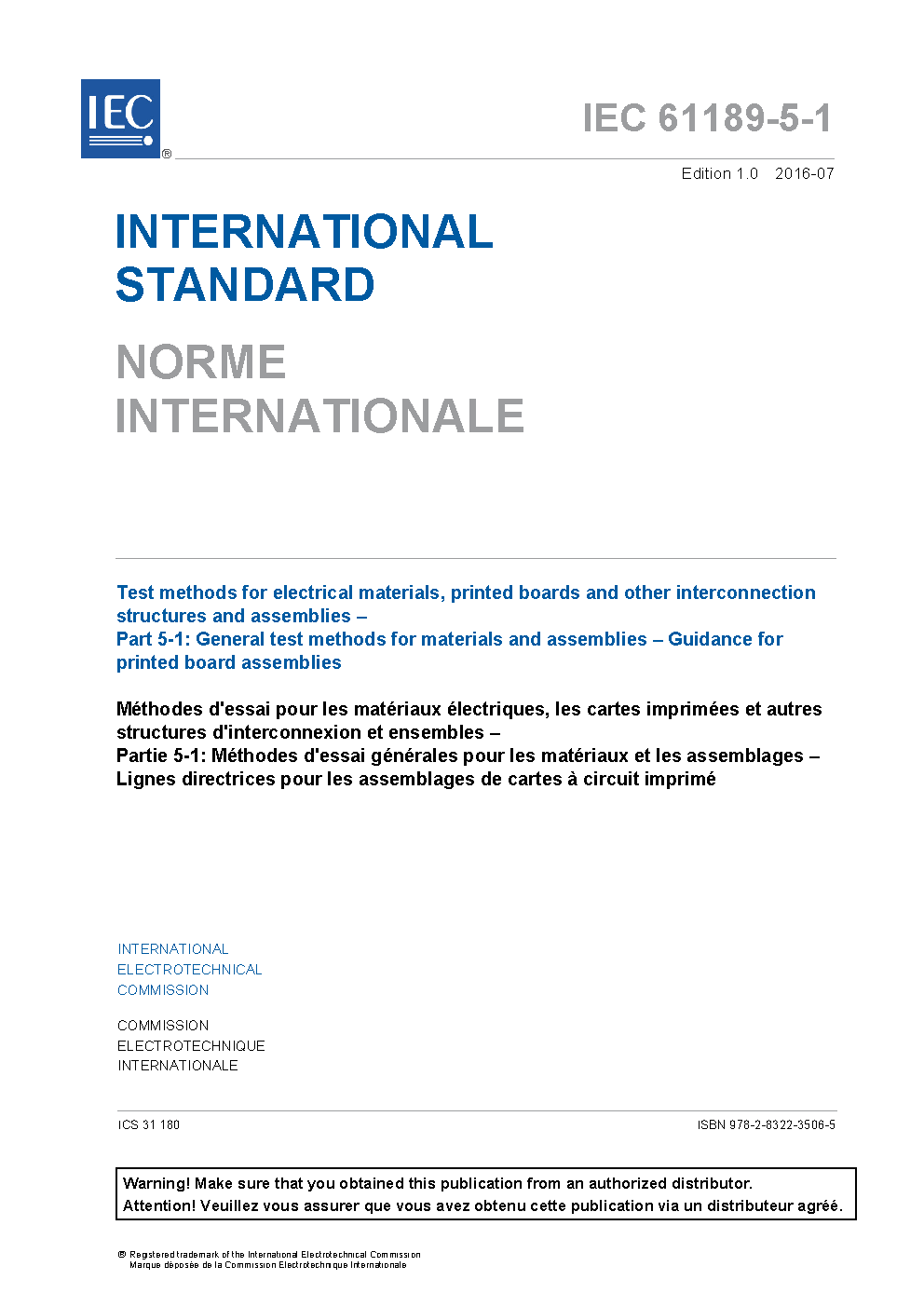 IEC 61189-5-1:2016 Test methods for electrical materials, printed boards and other interconnection structures and assemblies - Part 5-1: General test methods for materials and assemblies - Guidance for printed board assemblies