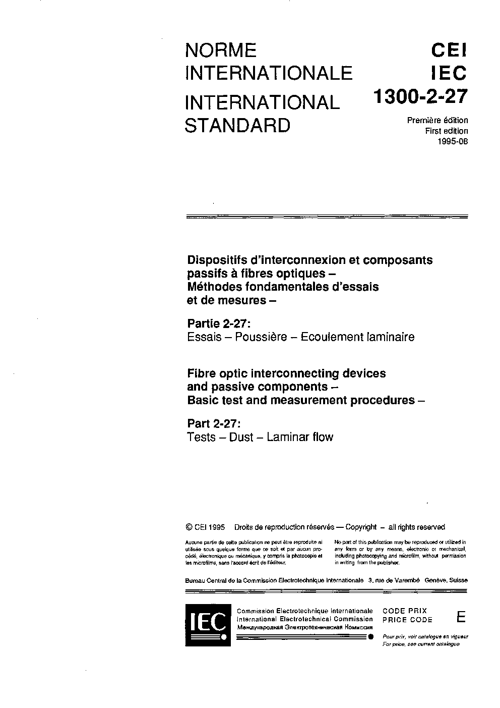 IEC 61300-2-27:1995 Fibre optic interconnecting devices and passive components - Basic test and measurement procedures - Part 2-27: Tests - Dust - Laminar flow