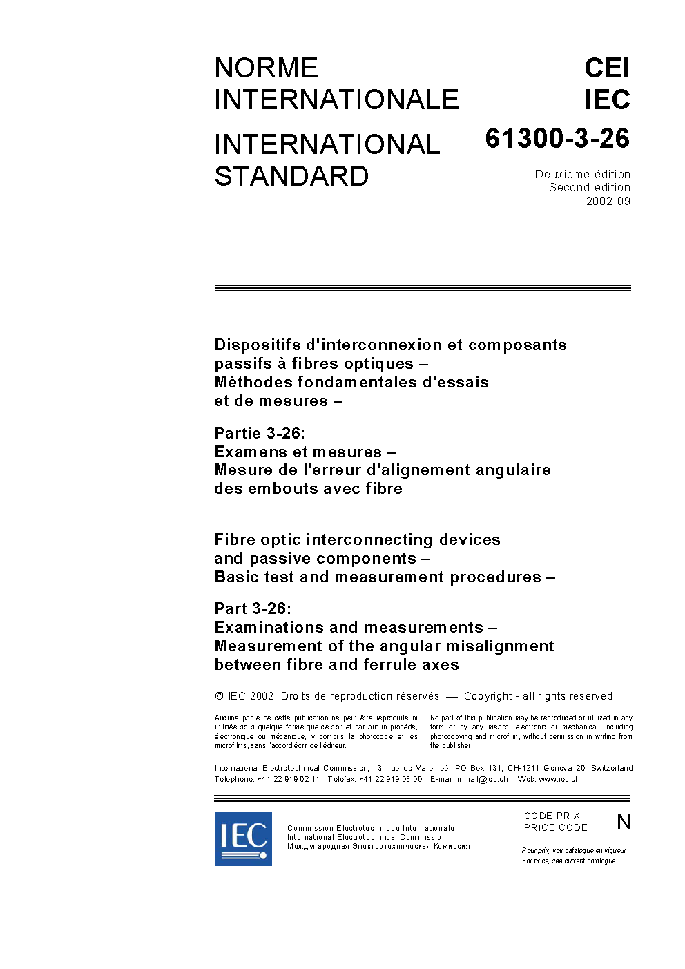 IEC 61300-3-26:2002 Fibre optic interconnecting devices and passive components - Basic test and measurement procedures - Part 3-26: Examinations and measurements - Measurement of the angular misalignment between fibre and ferrule axes