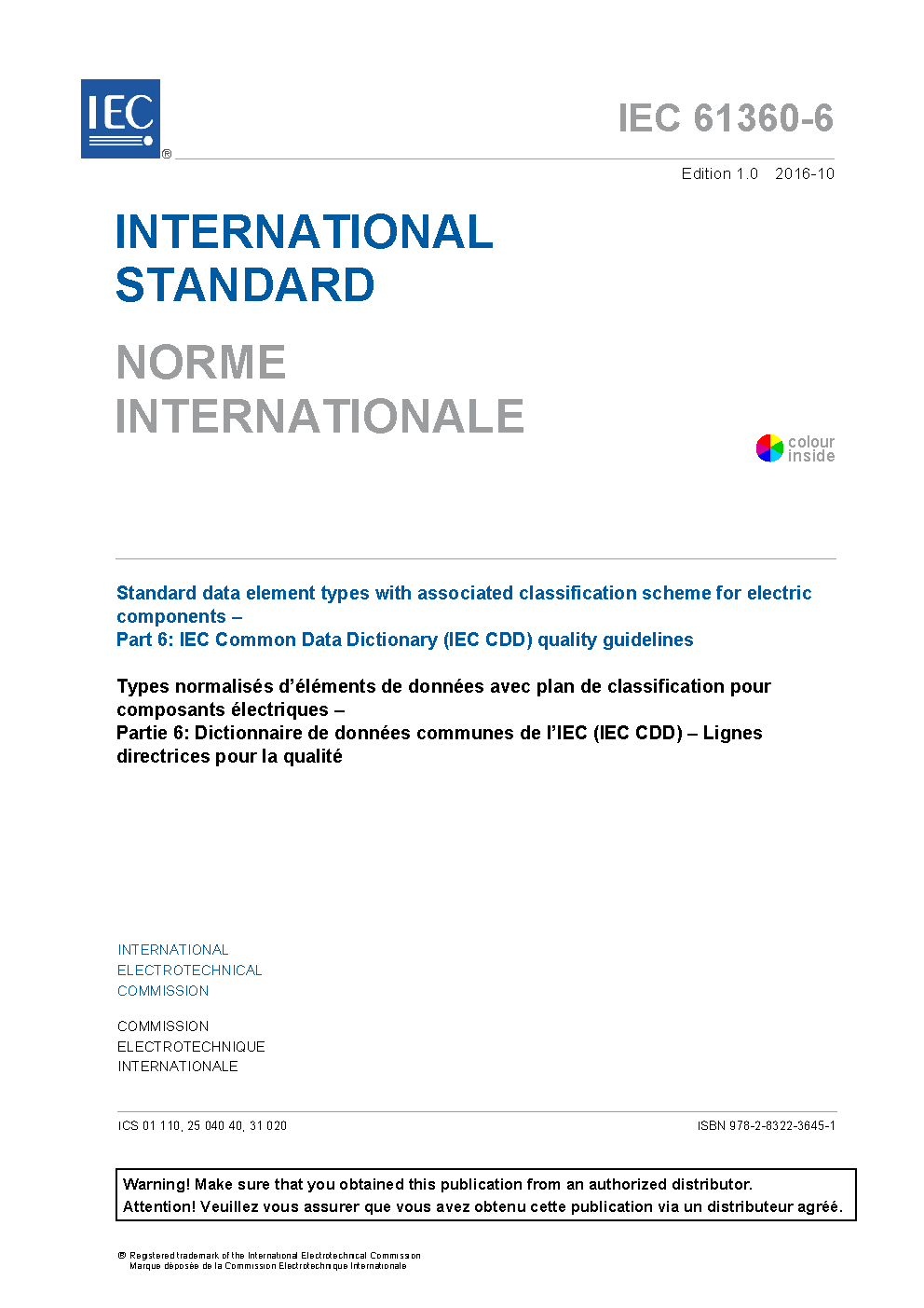 IEC 61360-6:2016 Standard data element types with associated classification scheme for electric components - Part 6: IEC Common Data Dictionary (IEC CDD) quality guidelines