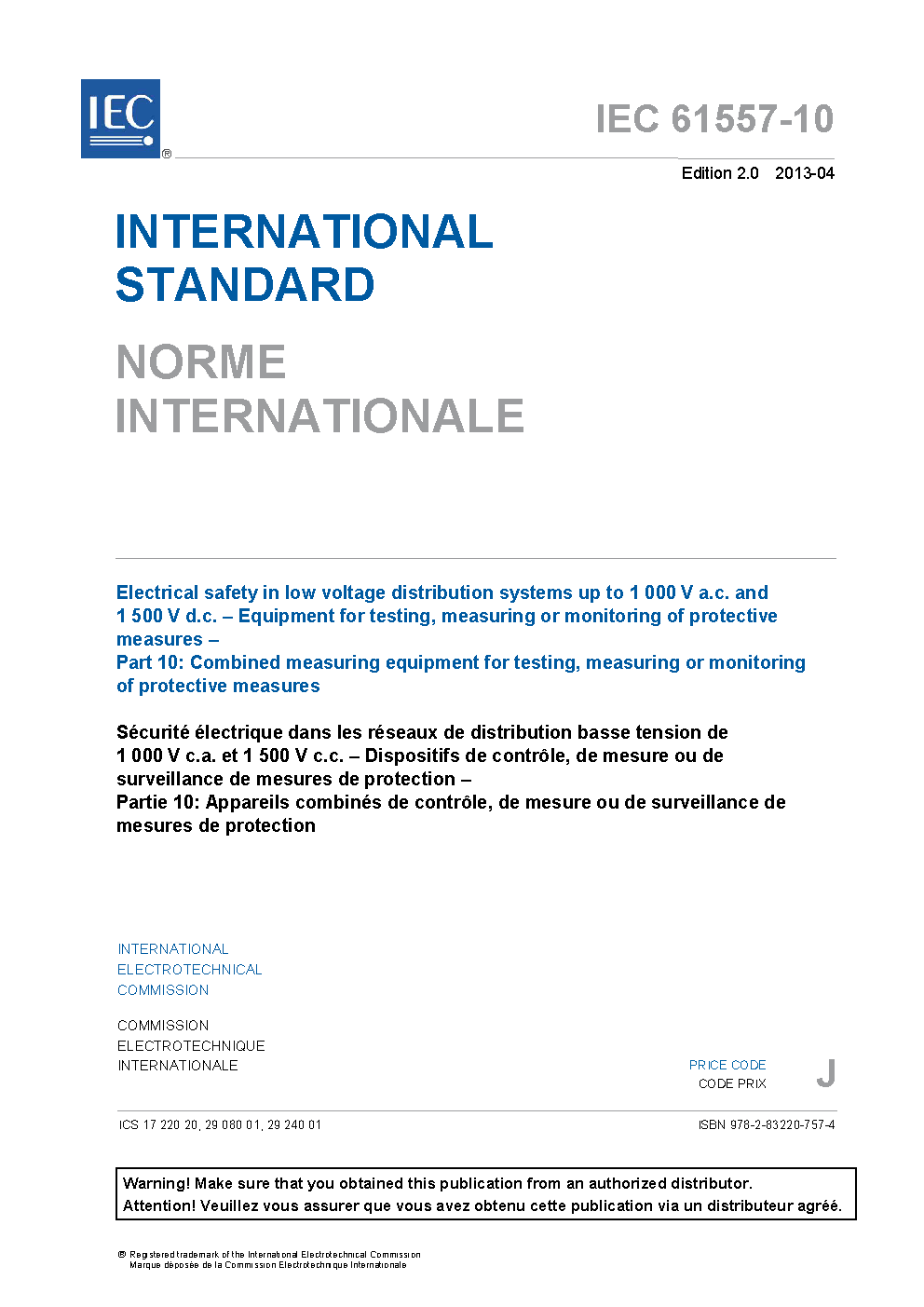 IEC 61557-10:2024 Electrical safety in low voltage distribution systems up to 1 000 V AC and 1 500 V DC - Equipment for testing, measuring or monitoring of protective measures - Part 10: Combined measuring equipment for testing, measuring and monitoring of protective measures