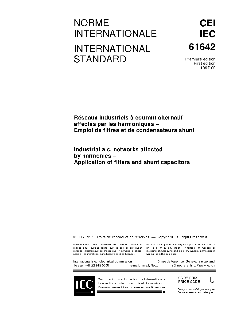 IEC 61642:1997 Industrial a.c. networks affected by harmonics - Application of filters and shunt capacitors