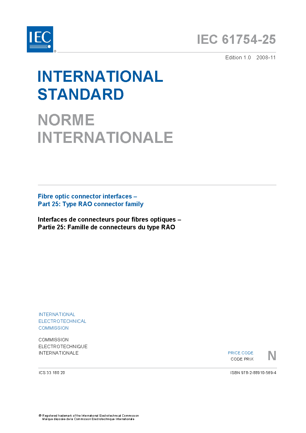 IEC 61754-25:2008 Fibre optic connector interfaces - Part 25: Type RAO connector family