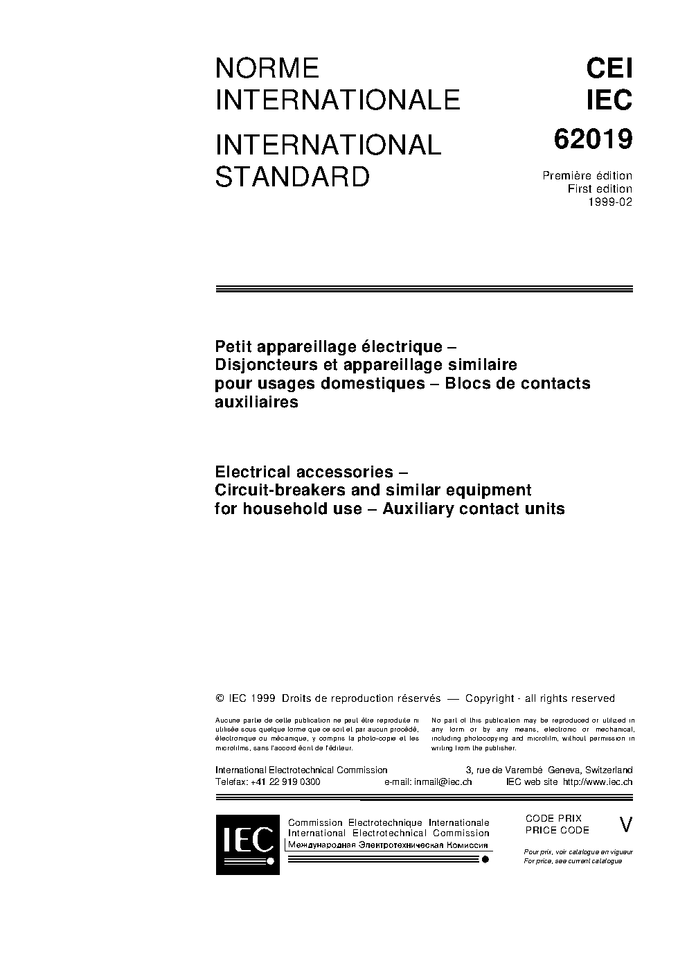 IEC 62019:1999/AMD1:2002 Amendment 1 - Electrical accessories - Circuit-breakers and similar equipment for household use - Auxiliary contact units