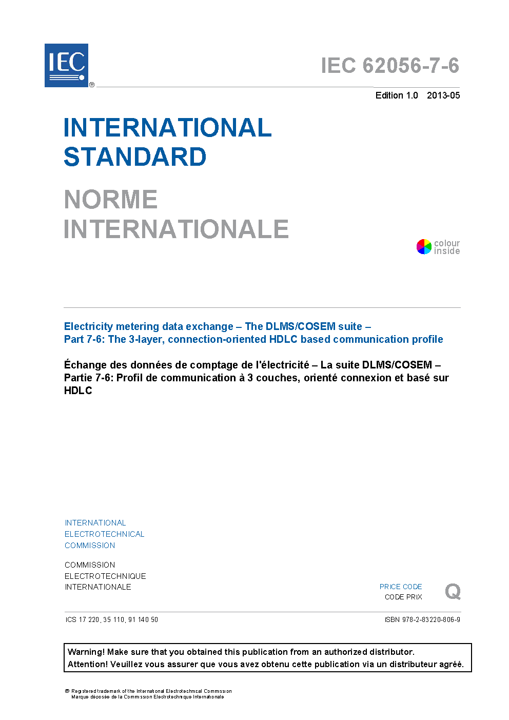 IEC 62056-7-6:2013 Electricity metering data exchange - The DLMS/COSEM suite - Part 7-6: The 3-layer, connection-oriented HDLC based communication profile