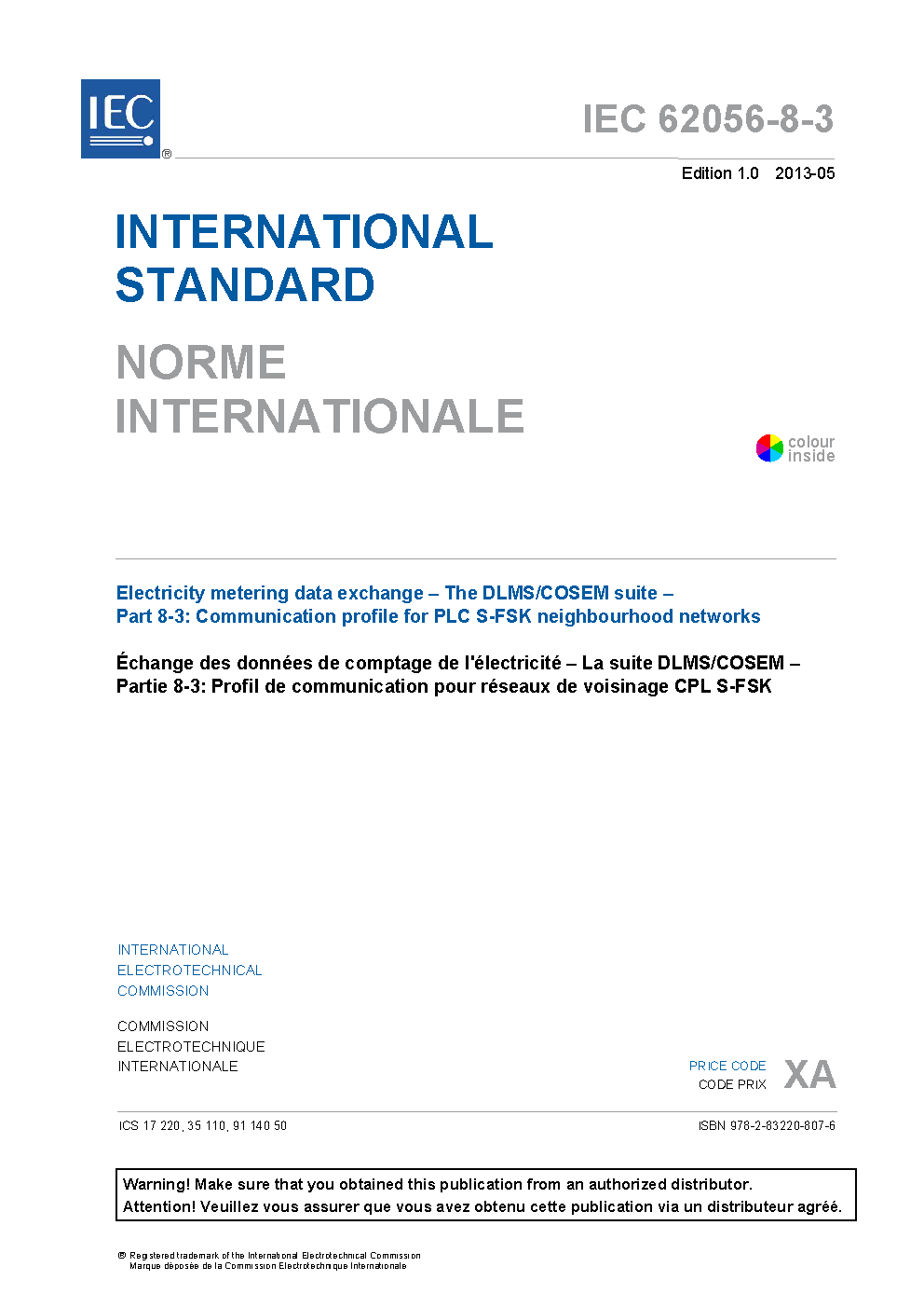 IEC 62056-8-3:2013 Electricity metering data exchange - The DLMS/COSEM suite - Part 8-3: Communication profile for PLC S-FSK neighbourhood networks