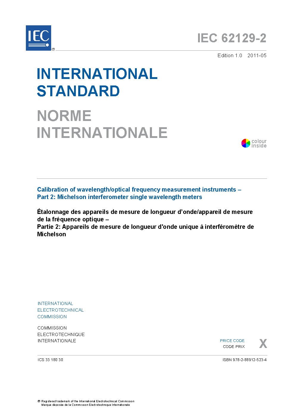 IEC 62129-2:2011 Calibration of wavelength/optical frequency measurement instruments - Part 2: Michelson interferometer single wavelength meters