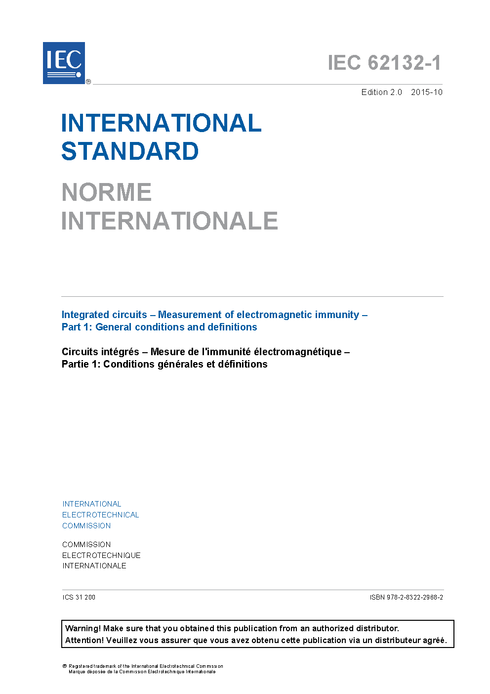IEC 62132-1:2015 Integrated circuits - Measurement of electromagnetic immunity - Part 1: General conditions and definitions