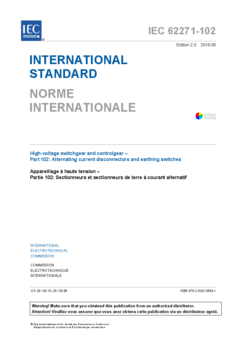 IEC 62271-102:2018/AMD1:2022 Amendment 1 - High-voltage switchgear and controlgear - Part 102: Alternating current disconnectors and earthing switches