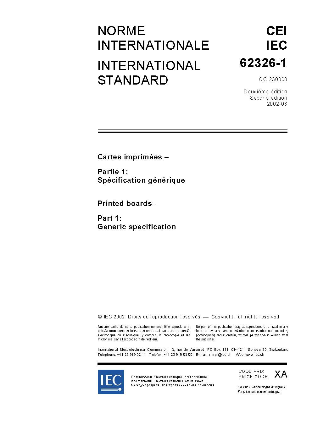 IEC 62326-1:2002 Printed boards - Part 1: Generic specification