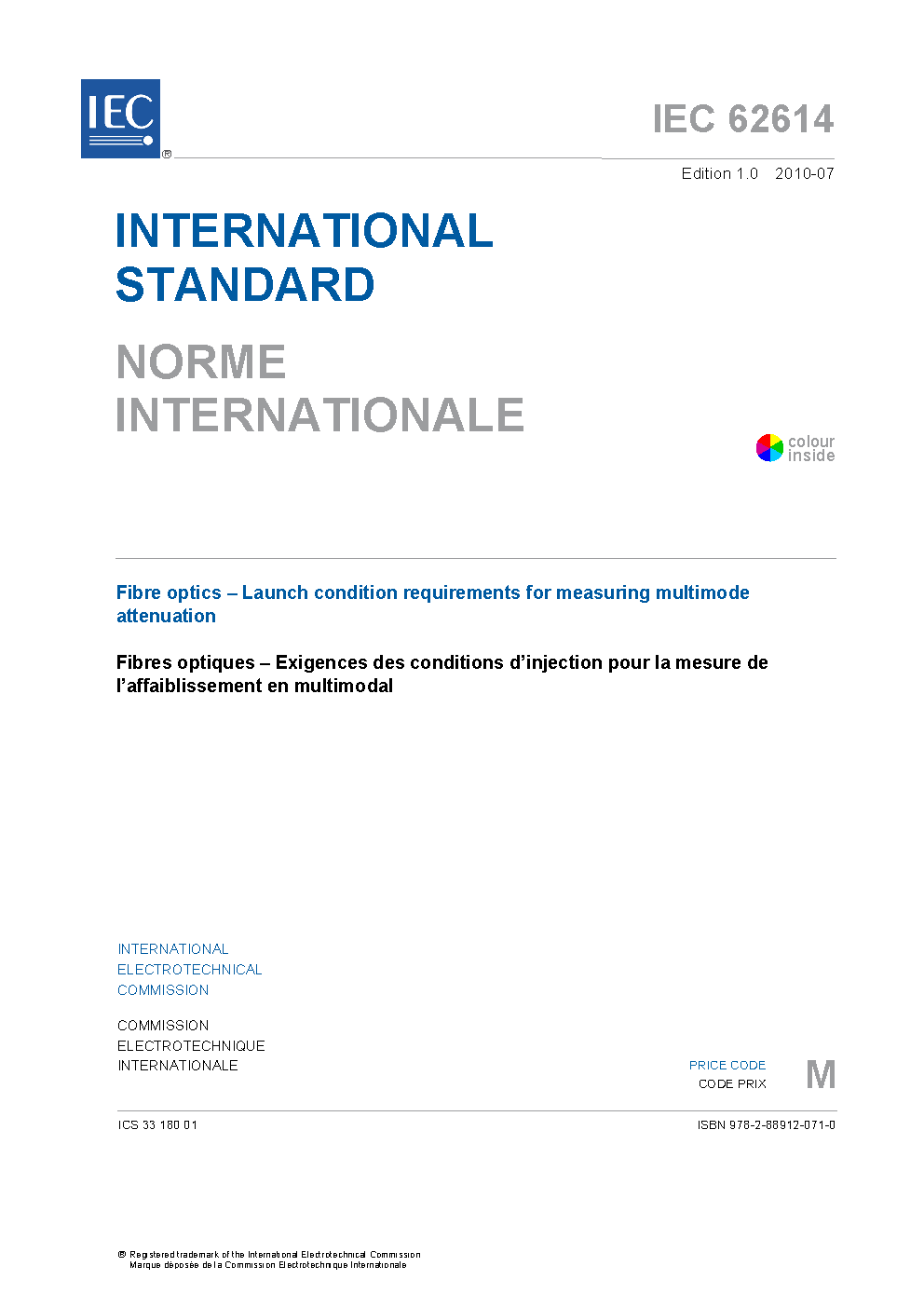 IEC 62614:2010 Fibre optics - Launch condition requirements for measuring multimode attenuation