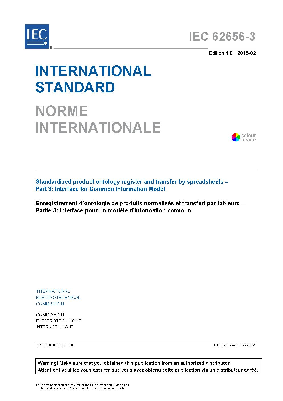 IEC 62656-3:2015 Standardized product ontology register and transfer by spreadsheets - Part 3: Interface for Common information Model
