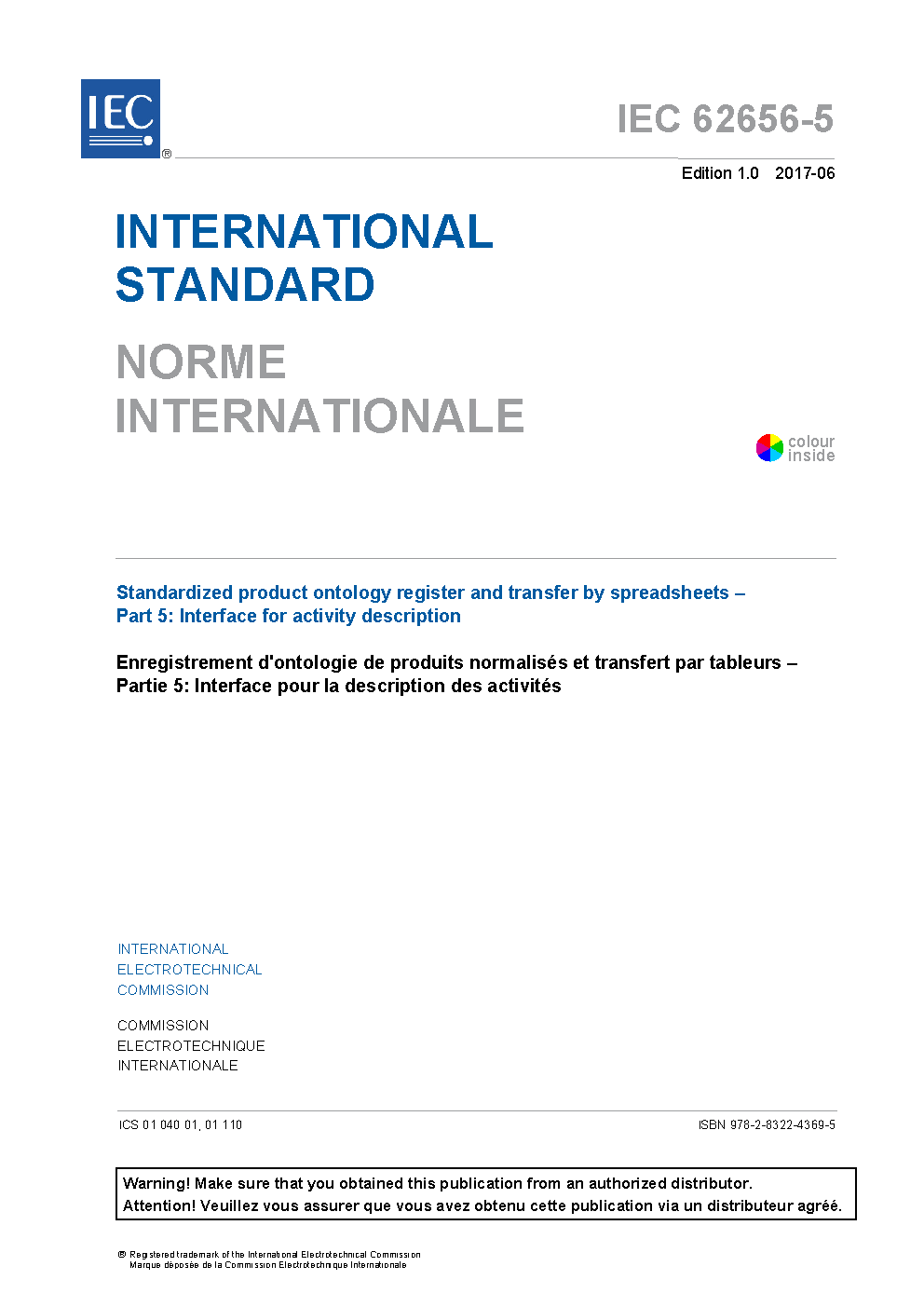 IEC 62656-5:2017 Standardized product ontology register and transfer by spreadsheets - Part 5: Interface for activity description