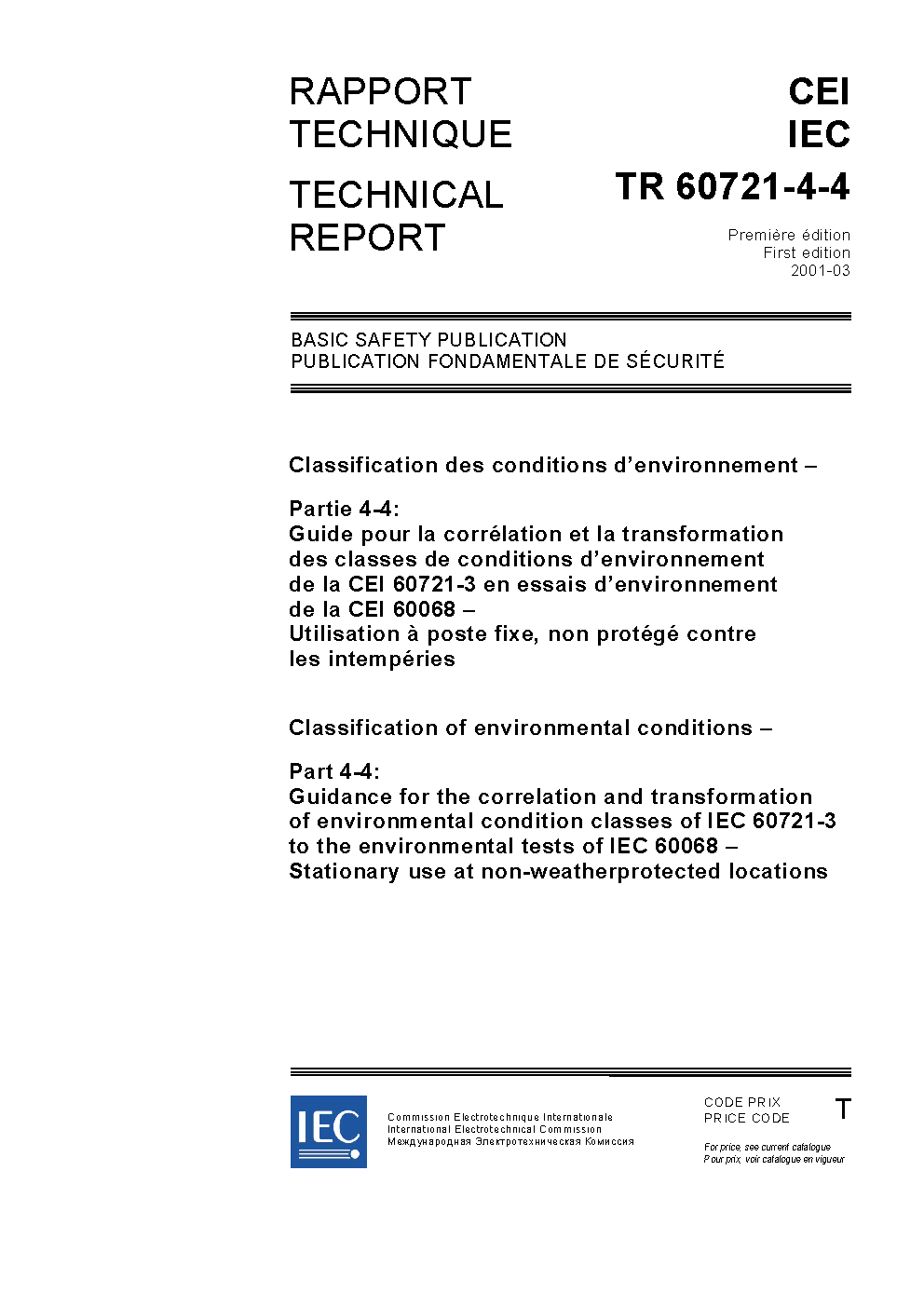 IEC TR 60721-4-4:2001/AMD1:2003 Amendment 1 - Classification of environmental conditions - Part 4-4: Guidance for the correlation and transformation of the environmental condition classes of IEC 60721-3 to the environmental tests of IEC 60068 - Stationary use at non-weatherprotected locations