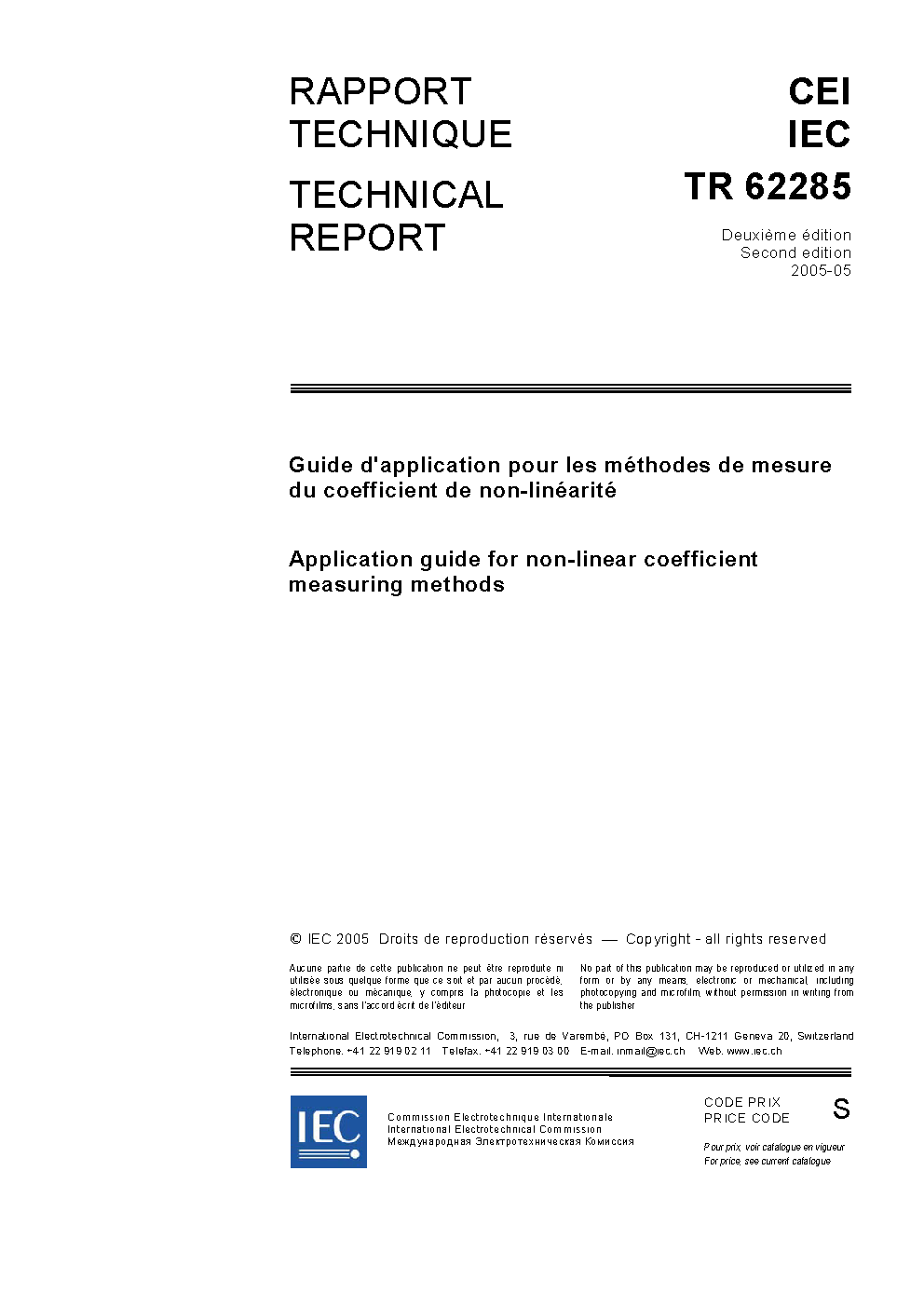 IEC TR 62285:2005 Application guide for non-linear coefficient measuring methods