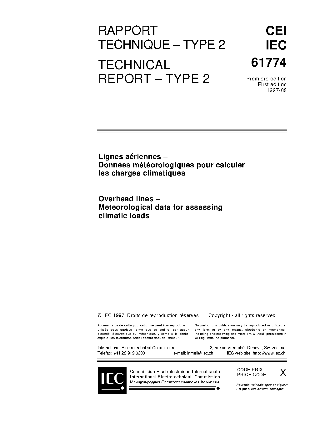 IEC TS 61774:1997 Overhead lines - Meteorological data for assessing climatic loads