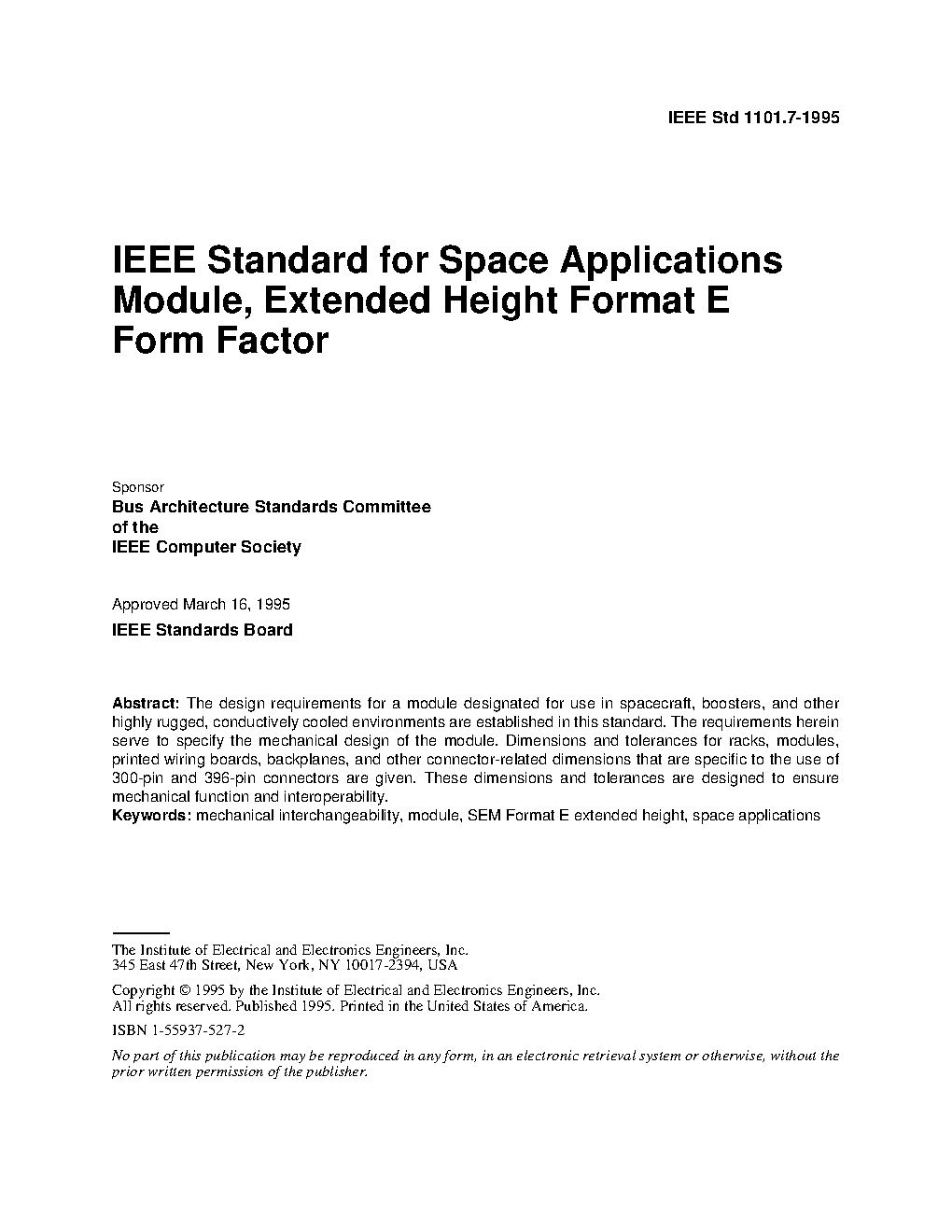 IEEE Standard for Space Applications Module, Extended Height Format E Form Factor
